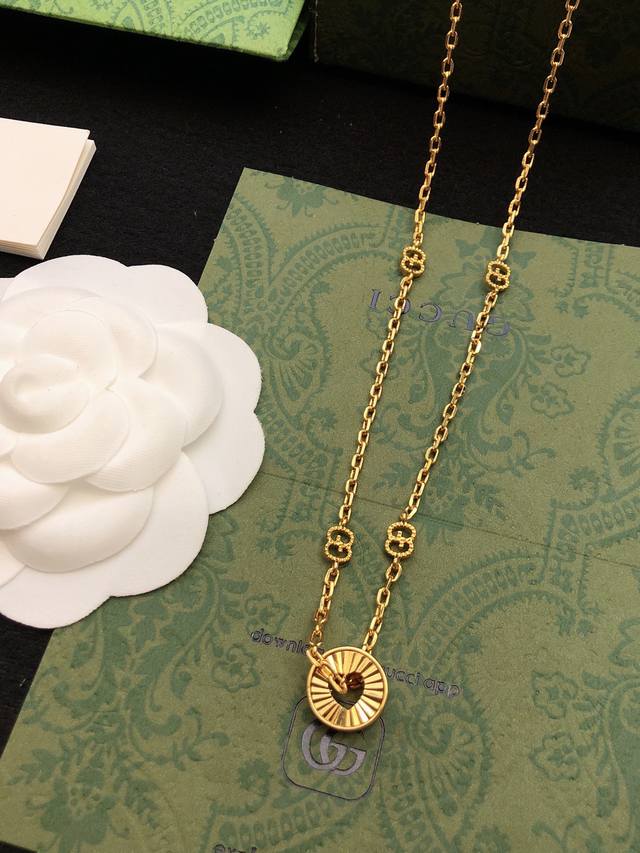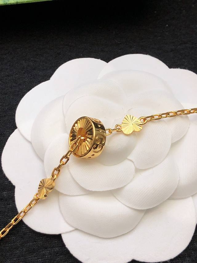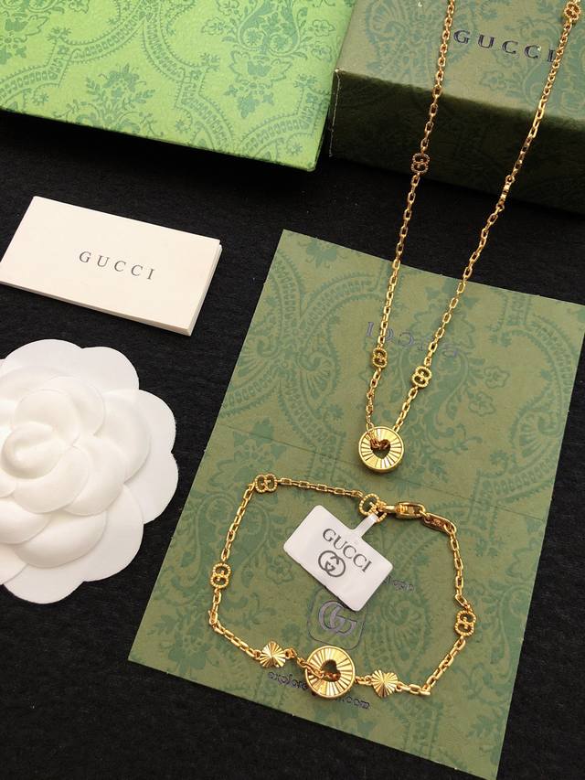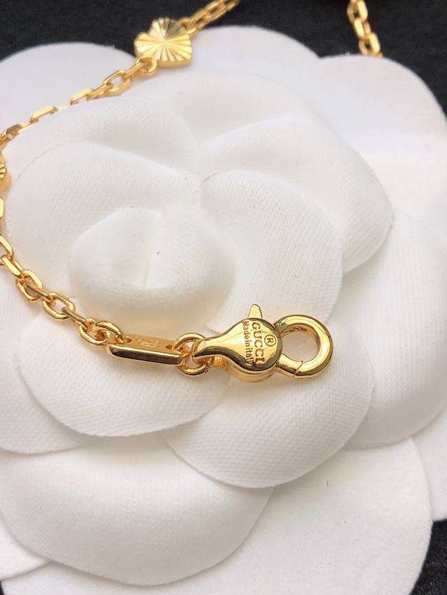 Necklace and Bracelet - A new design from the Gucci Lcon collection, crafted with a sophisticated and modern style. The intricate engraving details bring a touch of whimsy. The heart motif, a beloved design symbol of the brand, is incorporated into the Gg pattern, showcasing the brand's signature style. These two iconic logos highlight the design of this precious gold necklace.