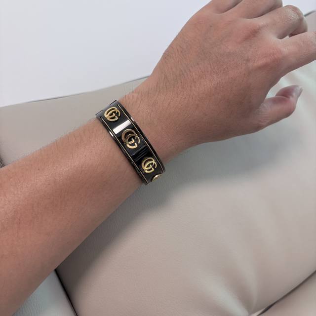 New Gucci Double G Charcoal Black Wide Unisex Couple's Bracelet. Super heavy duty bling bling, the colors are perfectly matched, and the high-end stainless steel material is non-allergenic and non-fading. One-to-one exquisite craftsmanship, a classic charm, and a high cost-effective must-have.