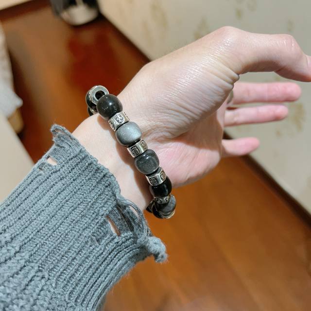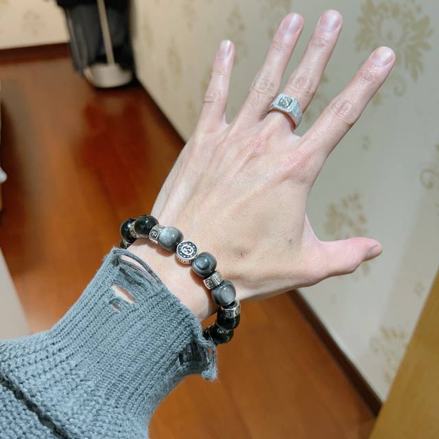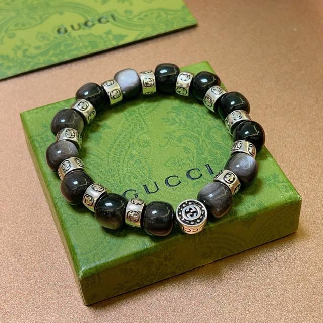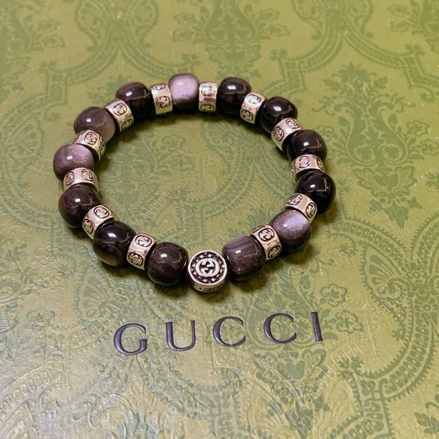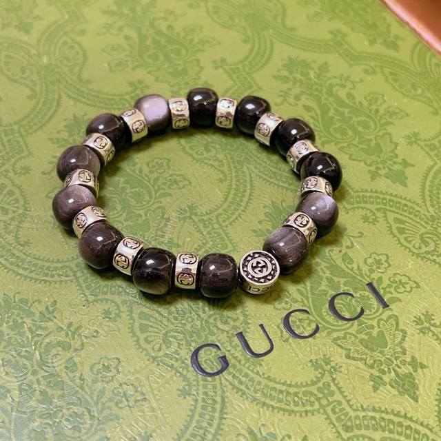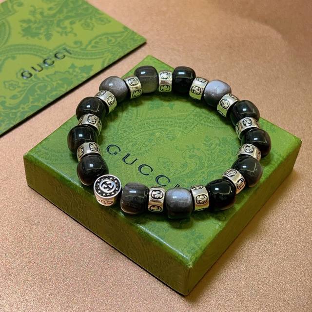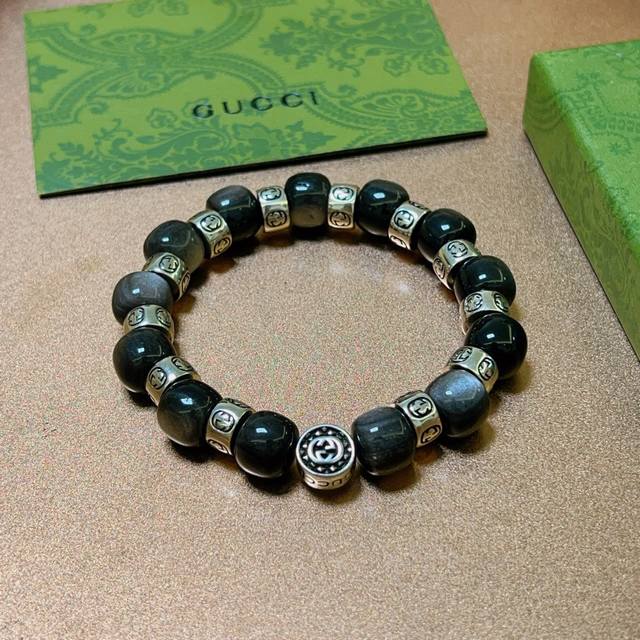 New Product Launch Gucci Bracelet Natural Stone Boutique Exquisite Version Natural Obsidian Gucci Bracelet Obsidian Thai Silver Style Gucci Bracelet Celebrity Same Style Men's and Women's Retro Distressed Style Original Replica Pure Handmade ~ Authentic Mold Opening Trendy Fashion Must-Have for Men and Women Couple Style Same Style Rock Punk Thai Silver Style Retro Elements Trendy Versatile Super Love When Ordering, Please Note Size 16cm to 24cm DDD