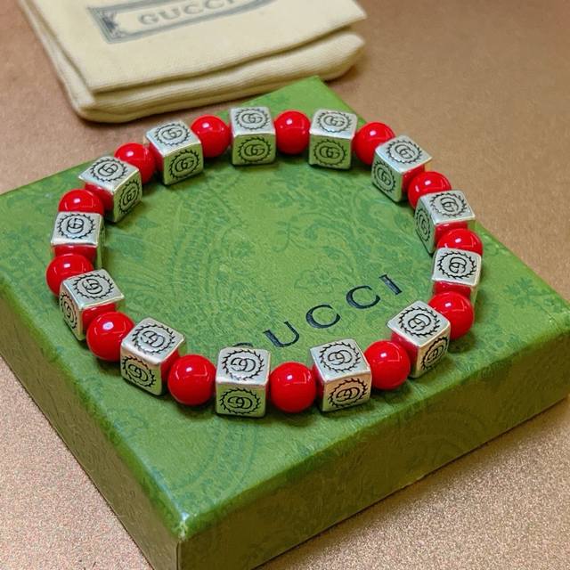 New product release: Gucci bracelet, luxury Gucci bracelet, red coral crystal bracelet, unisex style, latest model, fully beaded bracelet, higher-end, celebrity-themed, Anger Forest series double G vintage Gucci bracelet. Size: 16-24 cm. Details: matching distressed finish, not the usual shiny finish. This model is a long-time Gucci bestseller and pairs well with any outfit.