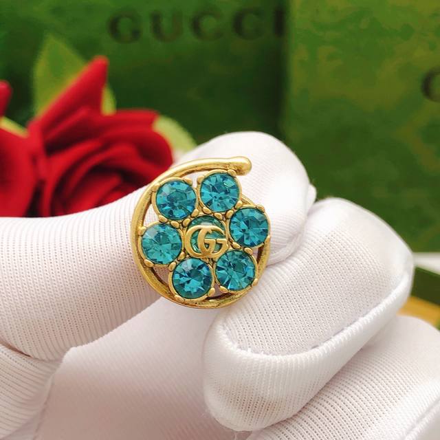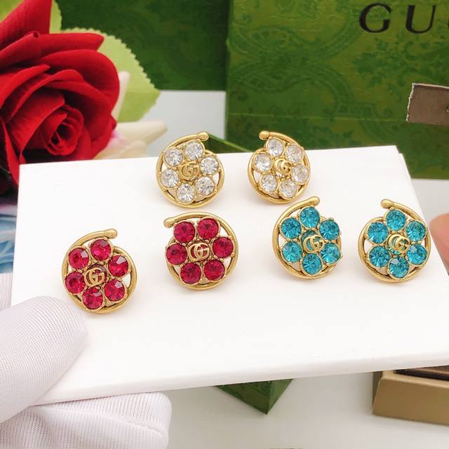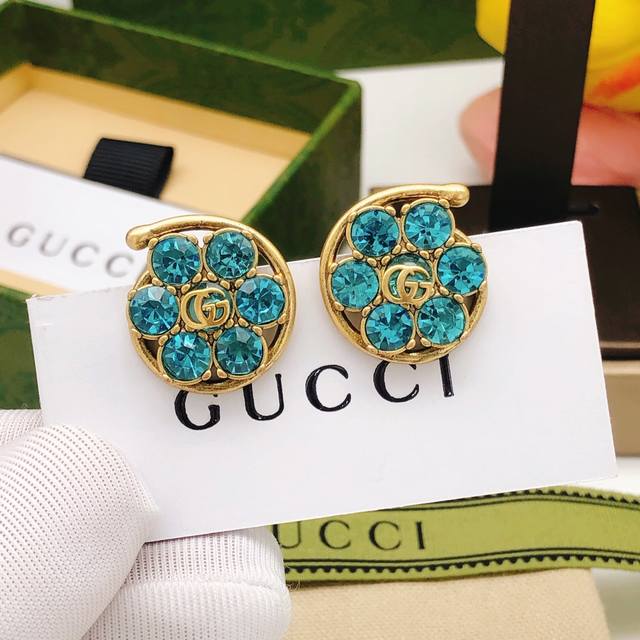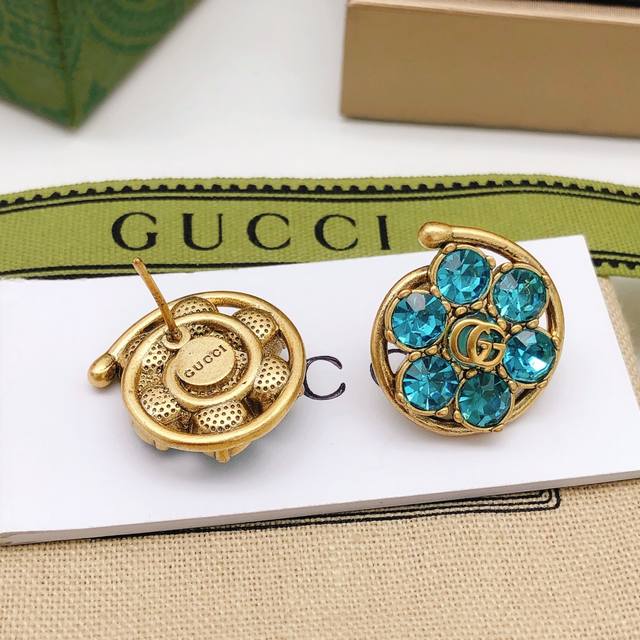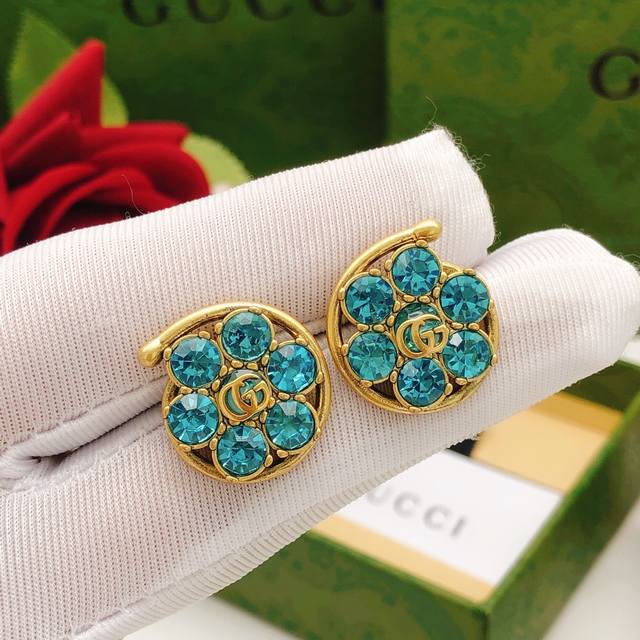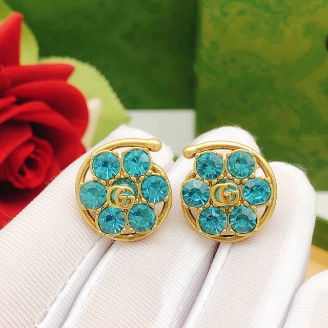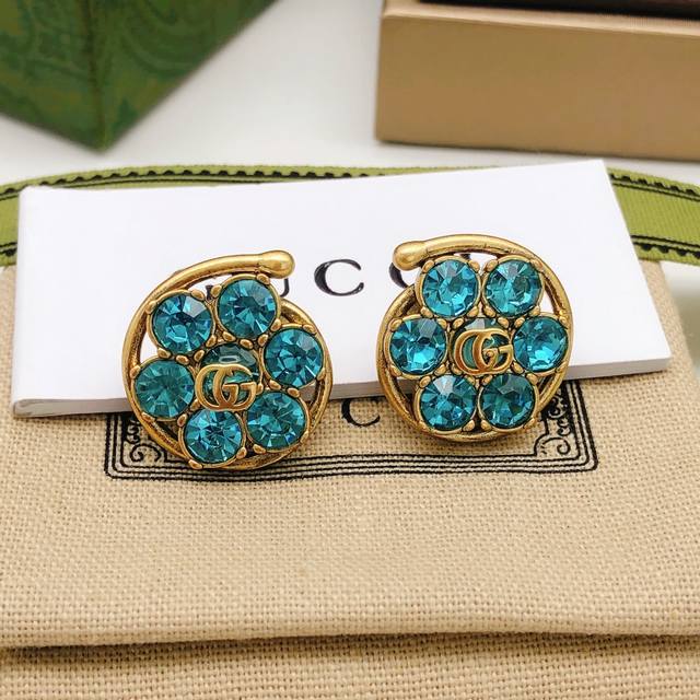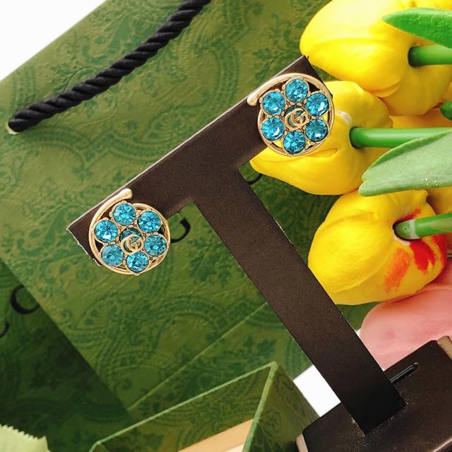 Gucc* Latest flower earrings blue consistent Zp brass material