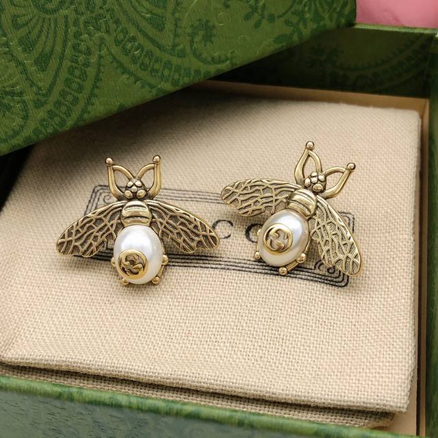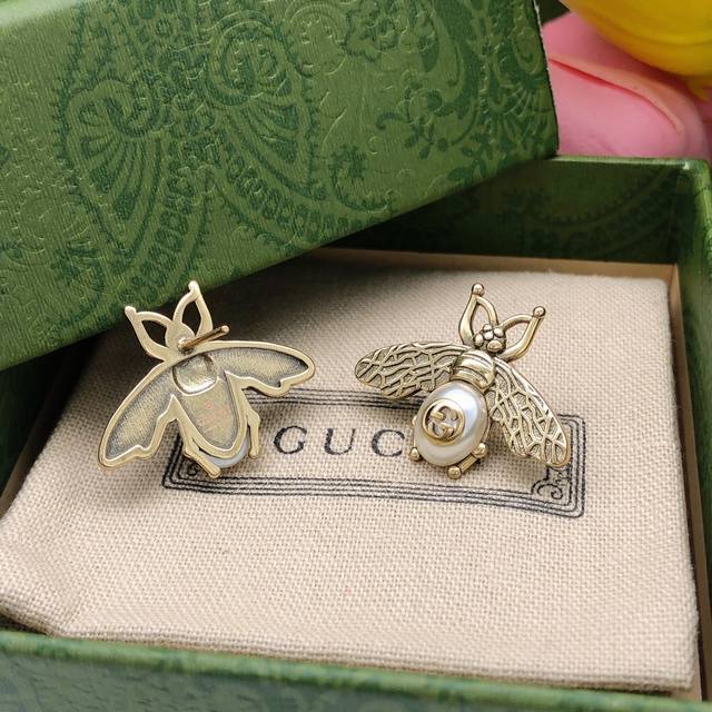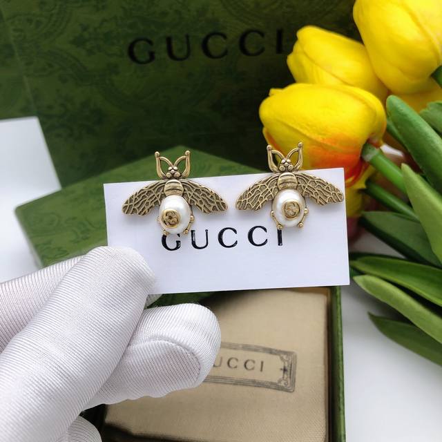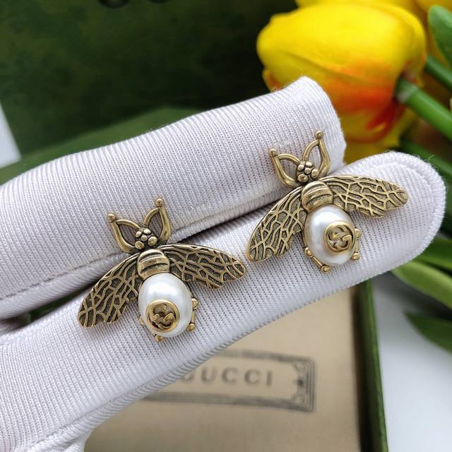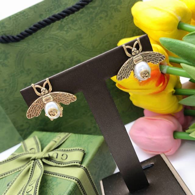 Gucci bee stud earrings are fashionable and elegant, with wings inlaid with white crystals, which can be matched with various styles to add dazzling brilliance! Super hot and beautiful