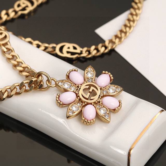 The Gucci Double G necklace, as the brand's iconic element, uses the brand's initials in a unique way. The gold-effect metal logo and the white glass pearl frame complement each other, making the entire design more refined and elegant. Integrating multiple iconic elements of the brand, this simple, versatile, fashionable and personalized necklace