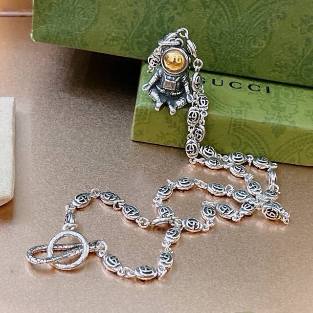 The latest Gucci necklace, a higher-end chain, is the same style as celebrities. This Anger Forest series double G Gucci necklace is also available. This is a retro, European, and American style from the Gucci Space series. The details are a distressed finish, unlike the usual glossy finish. This has always been a Gucci bestseller, perfect with trendy outfits.