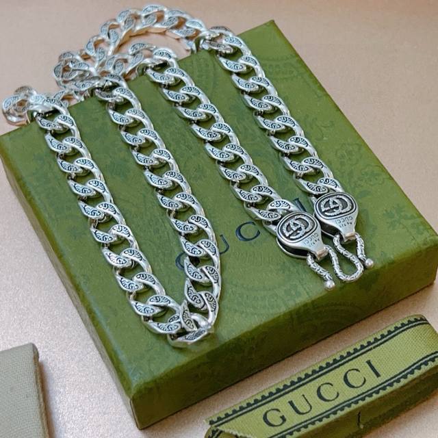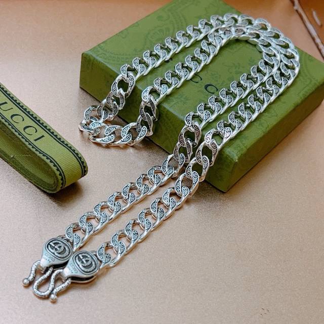 The latest luxury Gucci necklace, a chain of even higher quality, a celebrity favorite. Over a month in the making, meticulously crafted, perfectly handcrafted, the latest Anger Forest series Double G Gucci necklace. Chain length: 60cm, adjustable. Details: distressed finish, matching the original, unlike the standard glossy finish. This long-time Gucci bestseller pairs perfectly with trendy outfits.
