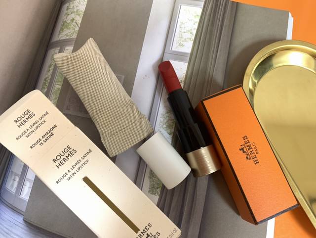 My first Hermes lipstick, I chose the absolutely foolproof 75 satin shade, a warm French red that's very bright, vibrant, and summery. The swatch is in the last picture, I love it so much
