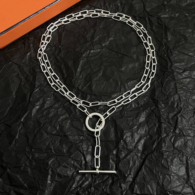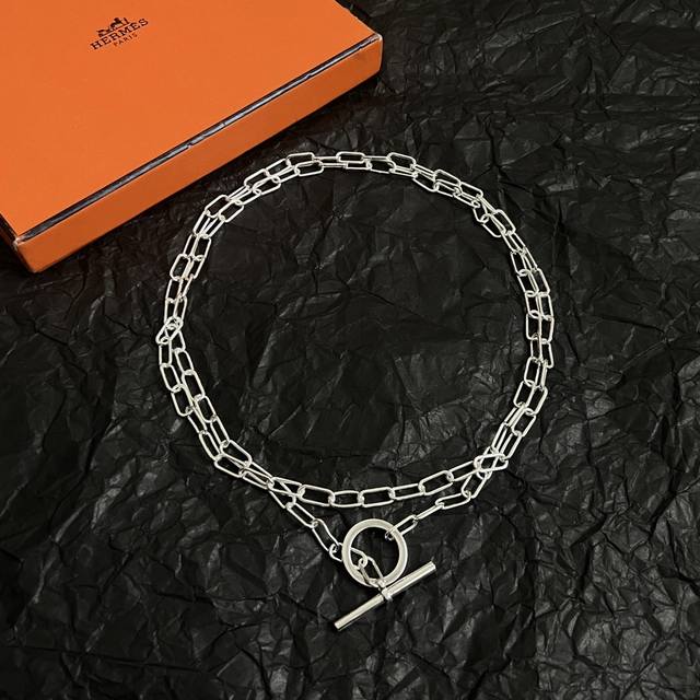 This Hermes necklace is exquisitely designed and looks stunning on the wrist. The subtle embellishment is both gentle and elegant, exuding a sophisticated and noble air. Length: 110 cm