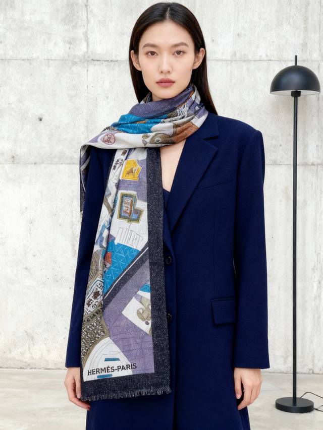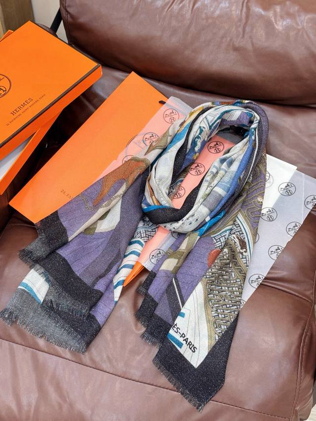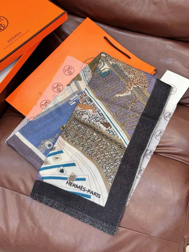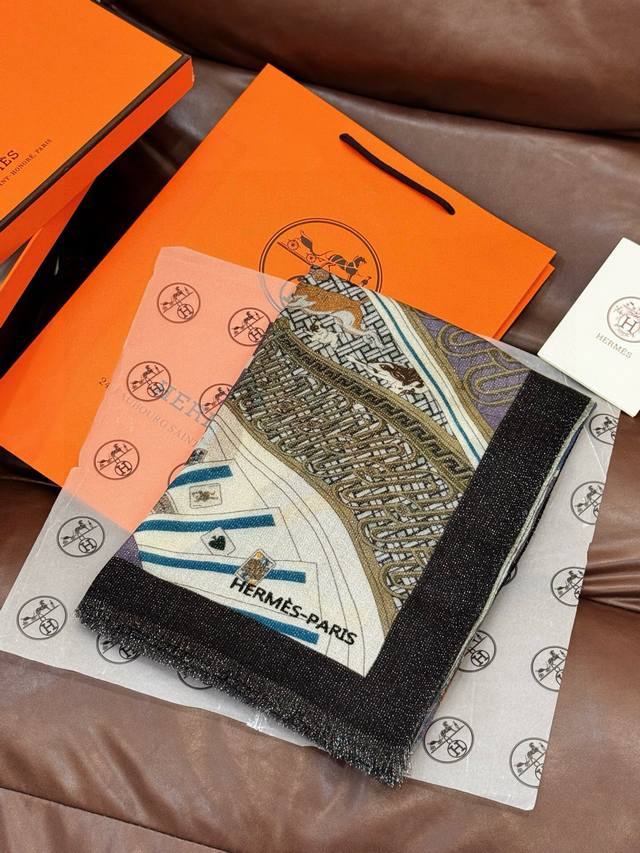 A glowing, shiny Hermes scarf, purchased directly from the Hermes boutique and highly praised for its beautiful cashmere print. Top-notch craftsmanship, excellent value. A best-selling Hermes cashmere square scarf with a three-dimensional pattern and texture, exuding a very high-end feel. Special high-end research and development, a stunning debut. Its unique cutting-edge processing has won the hearts of wealthy and beautiful women. Whether it's the quality, style, or price, it's sure to make designer lovers scream with excitement. Extremely high cost-performance, definitely worth buying. 100% top-quality pure cashmere. Size: 100cm*200cm.