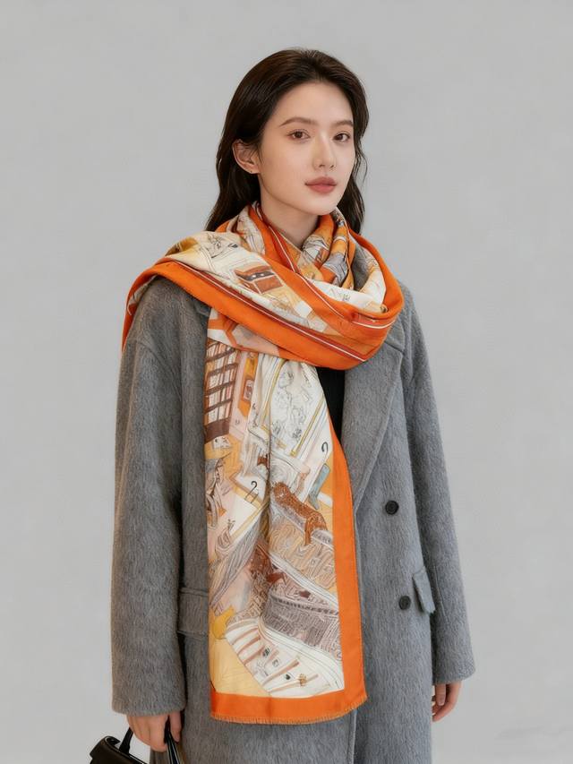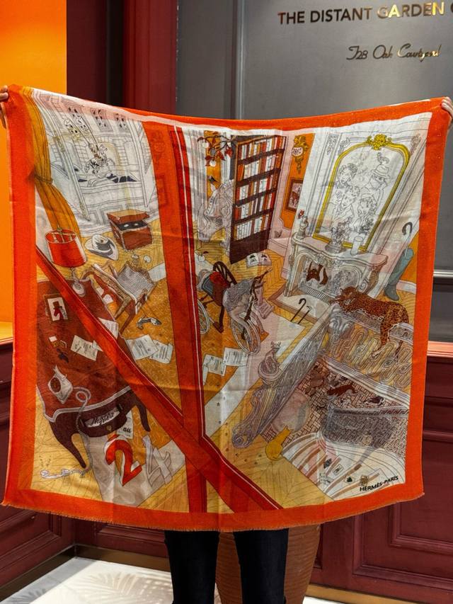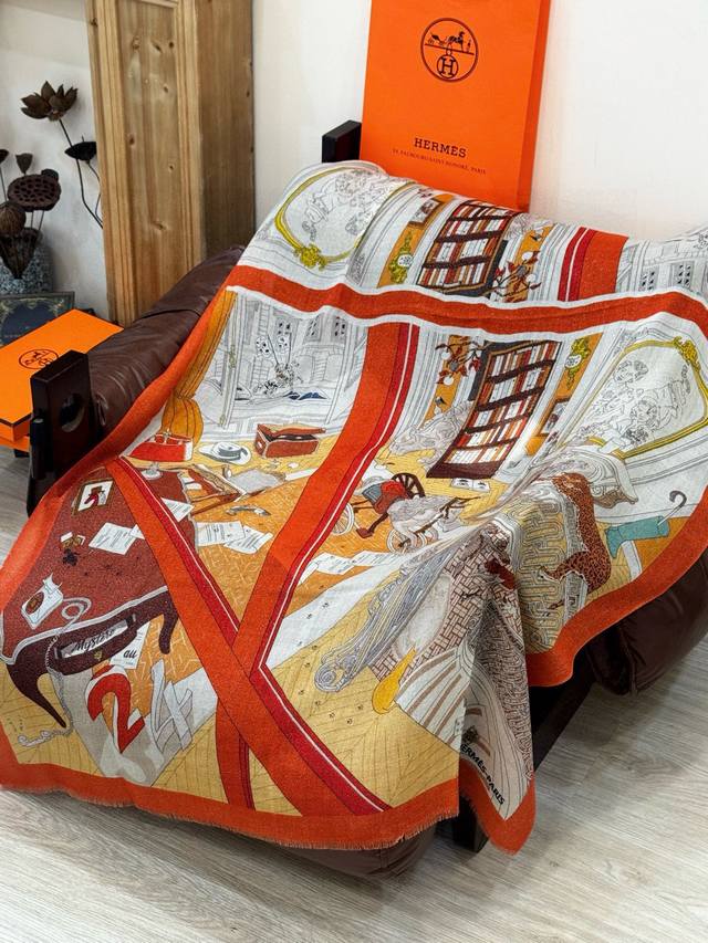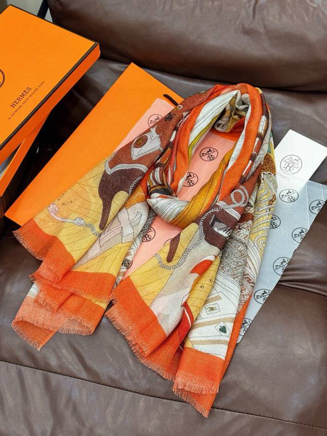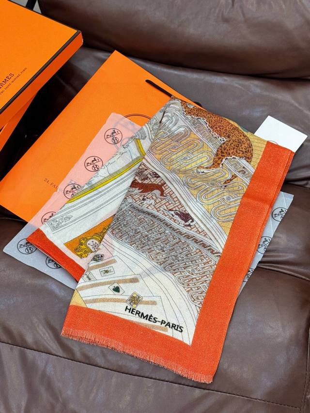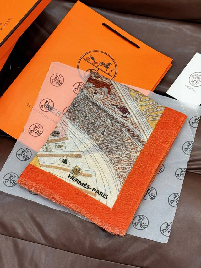 A glowing, shiny Hermes scarf, purchased directly from the Hermes boutique and highly praised for its beautiful cashmere print. Top-notch craftsmanship, excellent value. A best-selling Hermes cashmere square scarf with a three-dimensional pattern and texture, exuding a very high-end feel. Special high-end research and development, a stunning debut. Its unique cutting-edge processing has won the hearts of wealthy and beautiful women. Whether it's the quality, style, or price, it's sure to make designer lovers scream with excitement. Extremely high cost-performance, definitely worth buying. 100% top-quality pure cashmere. Size: 100cm*200cm.