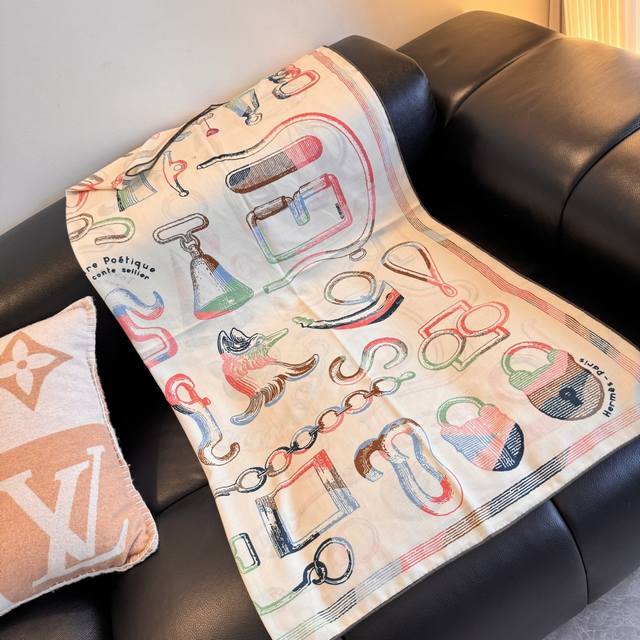 A Poetic Retrospective of Equestrian Tack 140 Reversible Shawl Designer: Florence Manlik Size: 136.5 x 135 cm Material: 30% Silk, 70% Cashmere Creative Origins Florence Manlik consulted Emile Herm