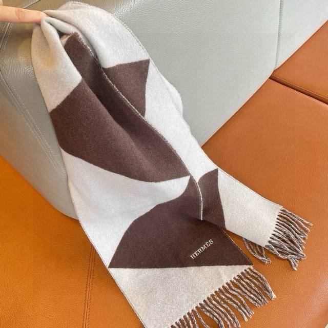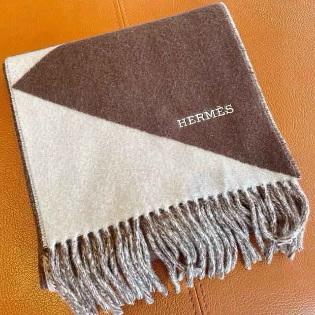 A rare, genuine Hermes geometric cashmere scarf. 100% pure cashmere, very easy to wear, truly. It's rare to find a Hermes children's scarf like this, but it's different. The size, thickness, and weight are perfect for babies. The texture is beautiful and incredibly soft! The weave is very tight and neat. We always insist on using the best materials for our babies. This is a genuine item we recently snatched from QC, so please be careful while it lasts. Size: 25*151cm x 135cm + 8cm tassels x 2. This size is suitable for both adults and children.