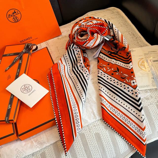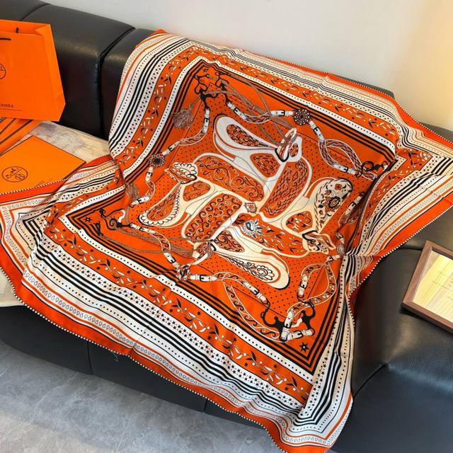 Shms2509 18 momme double-sided 90X90Cm twill silk The story on Hermes leather bo