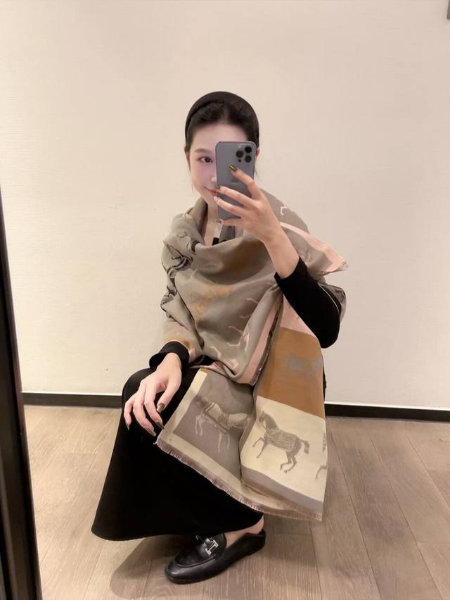 Hermes Clair De Lune Cashmere and Silk Shawl, hand-rolled hem. 70% cashmere, 30%