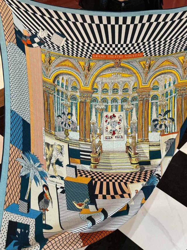 Herm S New Double-Sided Same-Color Design Name: New Grand Theatre Fabric: Velvet Size: 140X140 This Herm S Statement Accessory Can Be Worn In Multiple Ways And Pairs Seamlessly With Any Outfit. Whether Tied Around The Neck, Worn As A Top, Belt, Or Headscarf, It Is Always Elegant And Eye-Catching.The Pinal Imagery Printing Workshop Was Established In The Vosges Region Of France In 1796. Over The Course Of Two Centuries, The Colorful Illustrations Printed By This Workshop Spread Throughout Europe, With An Endless Array Of Themes: Exotic Animals And Plants From Around The World, Various Crafts, Significant Historical Events, Fables, And Legends,And Even Riddles. Gianpaolo Pagni Was Granted Access To The Workshop's Historical Archives, Allowing Him To Explore Its Inner Workings. Drawing Inspiration From Some Of The Ancient Prints He Saw, He Constructed This Captivating Theater Scene, With The Main Characters Being A Variety Of Wild Animals.The Clever Combination Of Geometric Shapes Evokes The Designer's Signature Use Of Stamp Patterns.