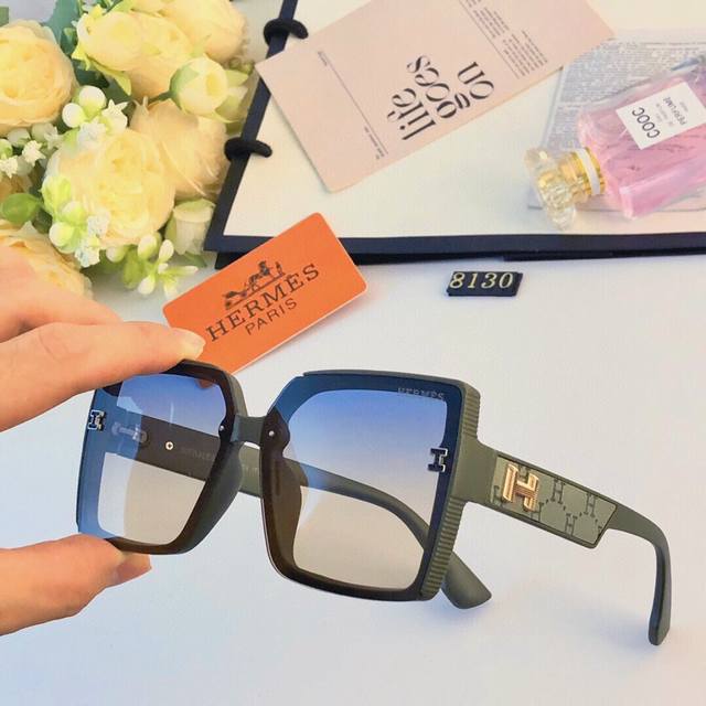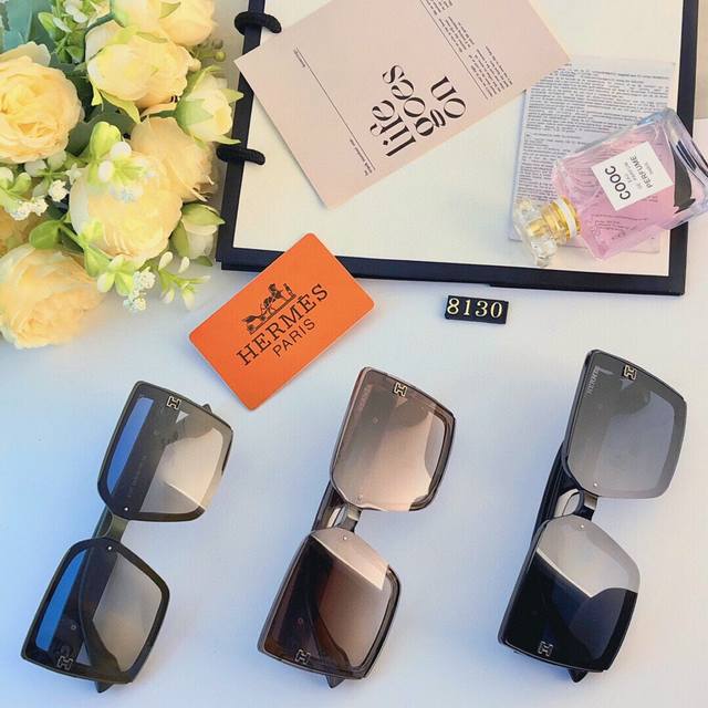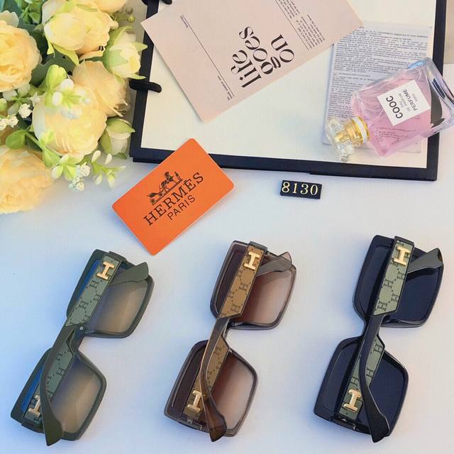 / Herme* Women's Sunglasses, New Year Style, Sun Protection, Square Frame, Korean
