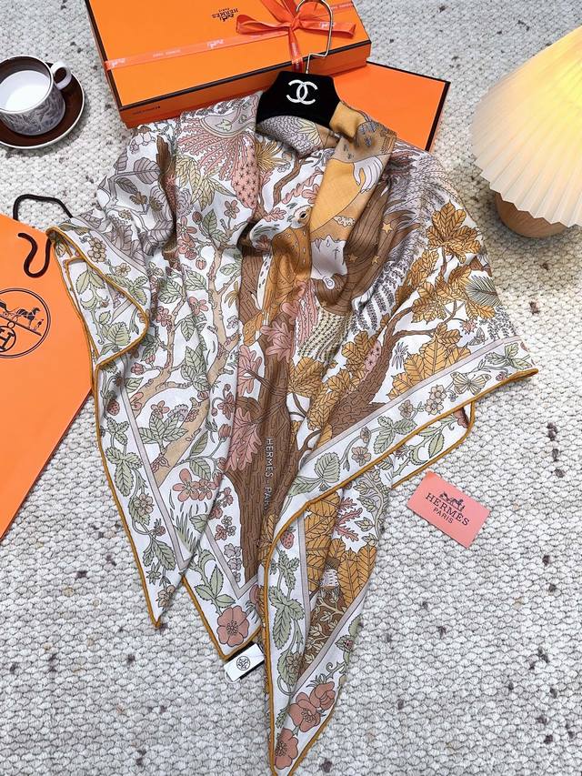 Hermes 2025 Fall/Winter Preview: Reversible Tonal Cashmere and Wool Circus Scarf, Hand-rolled Edges, Cashmere and Silk Blend Shawl. 70% Cashmere, 30% Silk. This shawl is made from a classic cashmere and silk blend, soft, lightweight, and easy to wear. A must-have for air-conditioned rooms! Ideal for chilly days or cool evenings. Size: 140 x 140 cm. Due to the hand-rolled edges, the actual size may vary slightly from the stated dimensions.