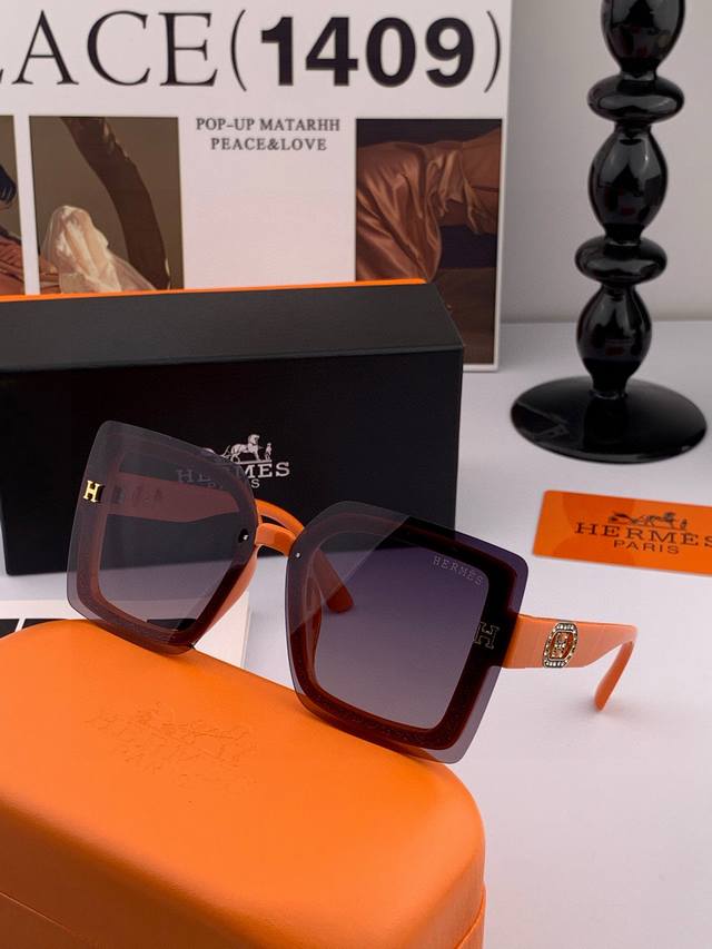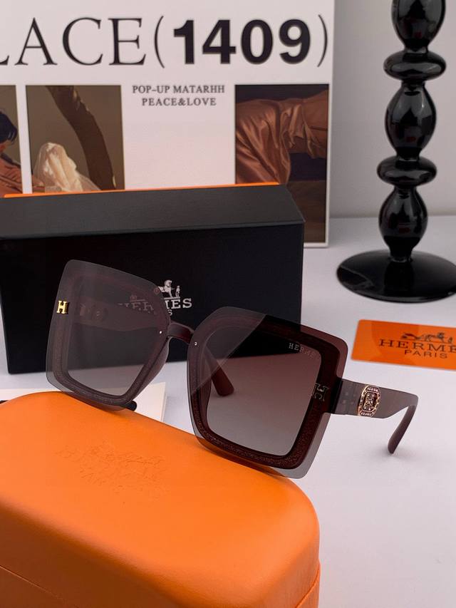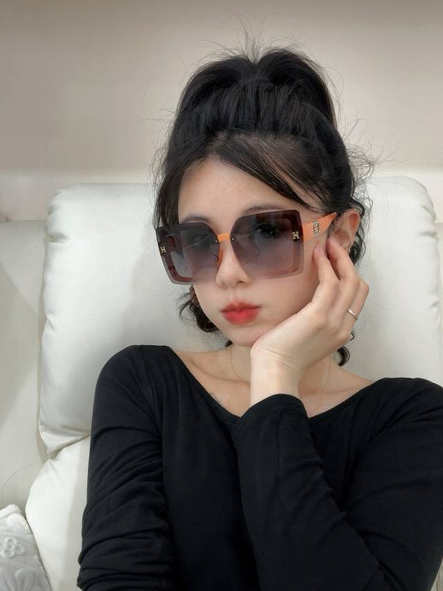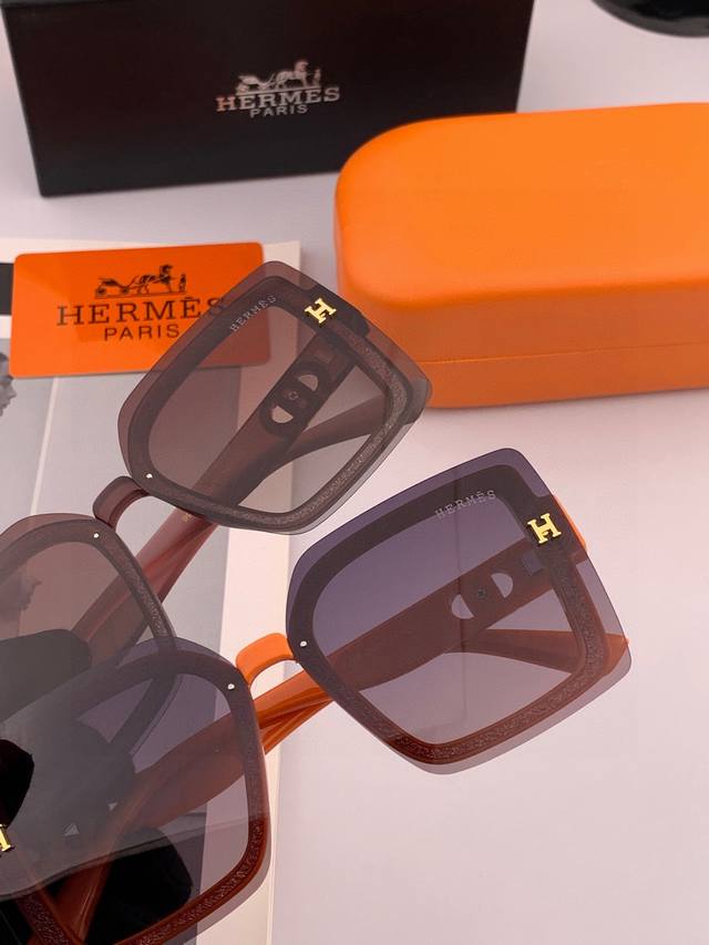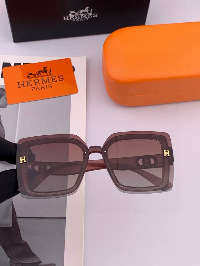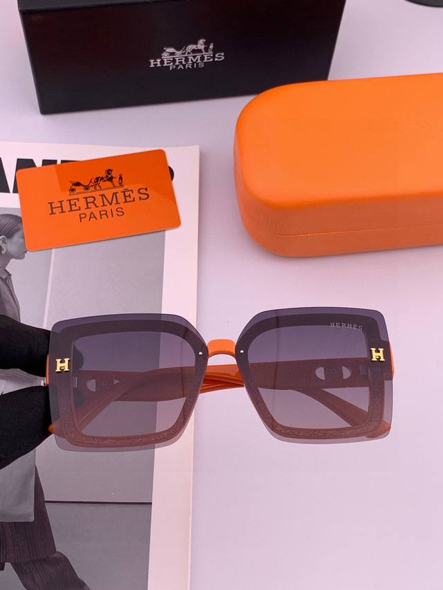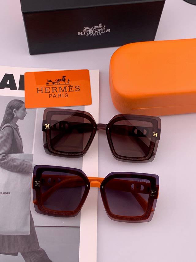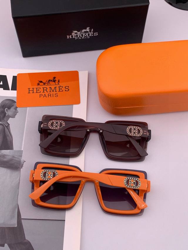 Hermes 2025 Spring New Arrival Original Shipment Popular Item Classic Luxury Global Style [Kiss] Stylish Square Frame Sunglasses with Extraordinary Temperament Classic Oversized Frame Sunglasses [Basketball] Top Quality Luxury Logo Authentic High Quality Model: H8998