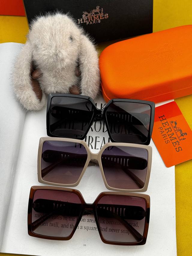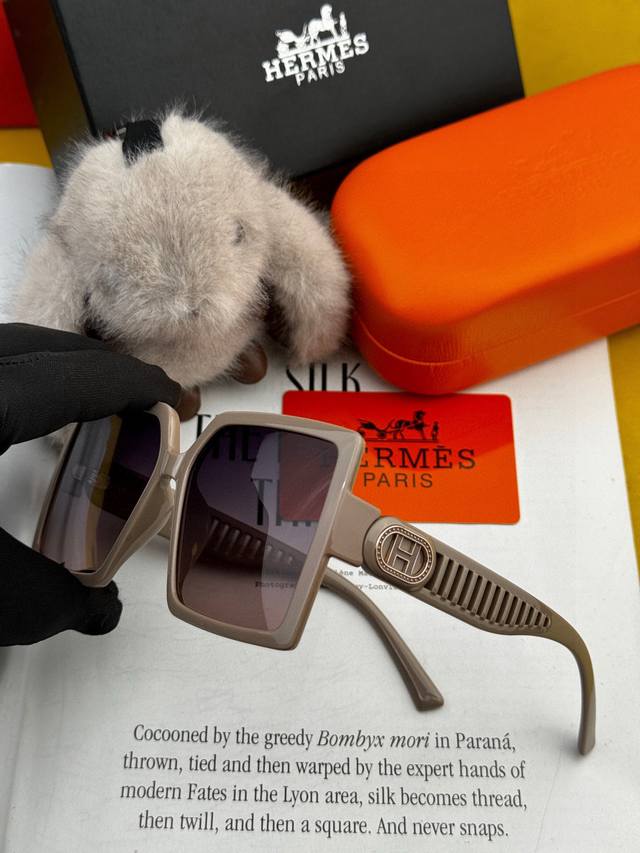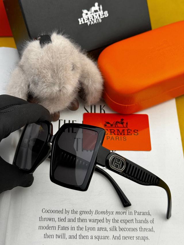 Hermes 2025 Spring New Original Shipping Internet Celebrity Super Hot Classic Luxury Global Style [Qinqin] Fashion Square Frame Sunglasses Extraordinary Temperament Classic One-Piece Large Frame Style Sunglasses [Basketball] Top Quality Luxury Logo Genuine High Quality Model: H7612