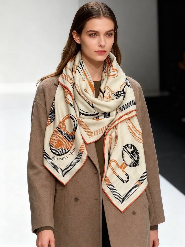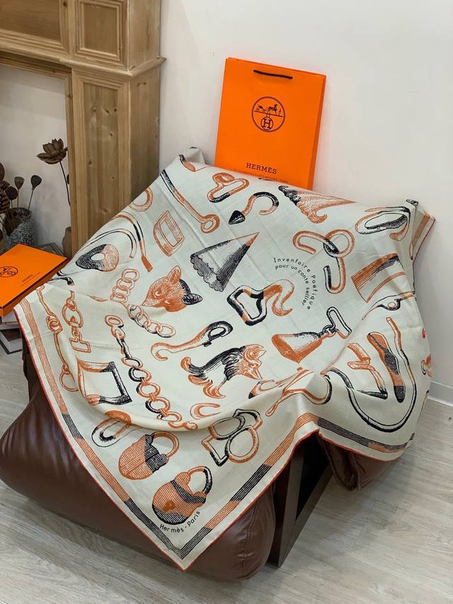 Hermes "A Poetic Retrospective of Equestrian Tack" 140 Shawl DDD New Arrival Always upholding high quality DDD Hand-rolled cashmere and silk blend shawl 70% cashmere, 30% mulberry silk DDD This charming 140 shawl exudes inner elegance and effortless confidence. This soft and lightweight accessory is exquisitely crafted, easily styled, and suitable for all occasions. DDD Designer: Florence Manlik DDD Size: 136 x 137 cm Due to the hand-rolled hem of this shawl, the indicated size may vary slightly. DDD