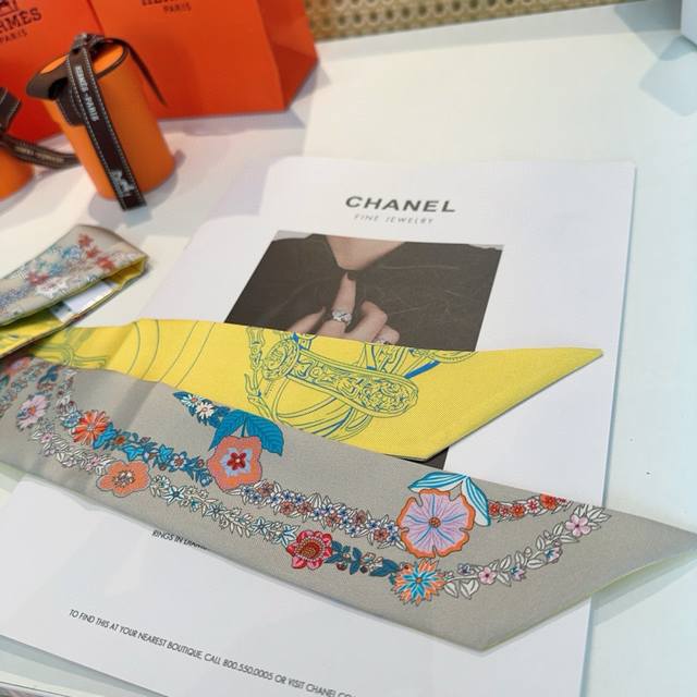 Hermes "Gorgeous Reins Floral Edition" Twilly Mini Silk Scarf. Twilly silk ribbon, 100% mulberry silk. This petite silk accessory can be worn in countless ways to add a touch of whimsy to your everyday look. Made in France. Designers: Christine Henry and Hugo Grygkar. Size: 5 x 86.5 cm.