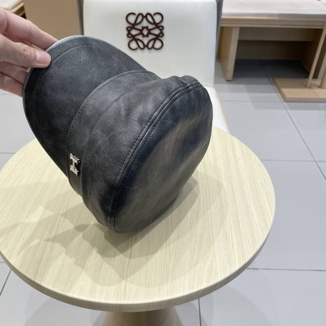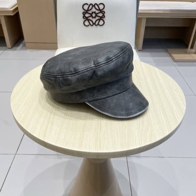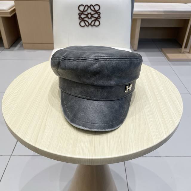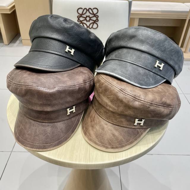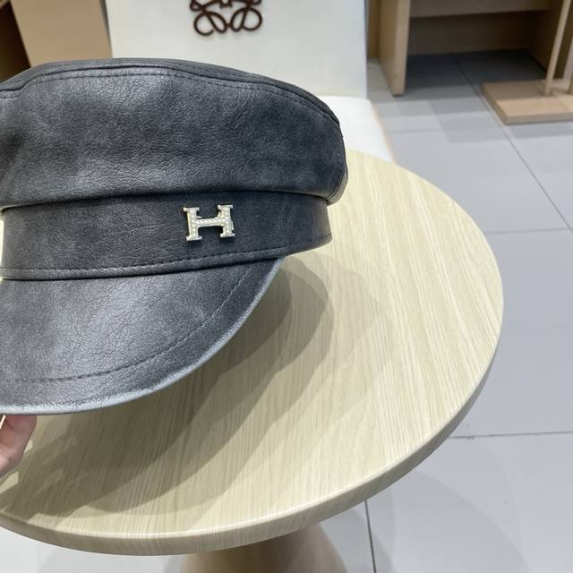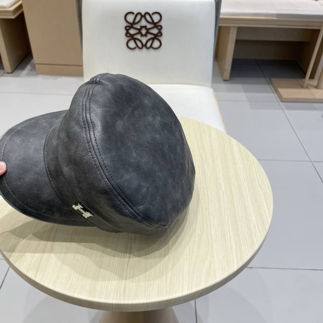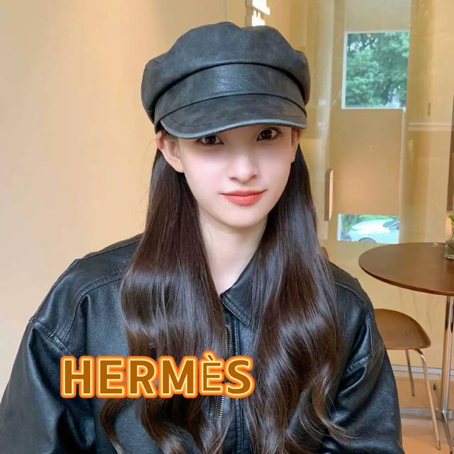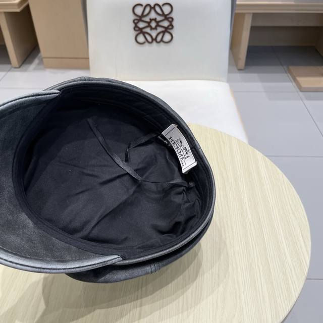 / Hermes leather duck tongue octagonal hat female spring and autumn literary all-