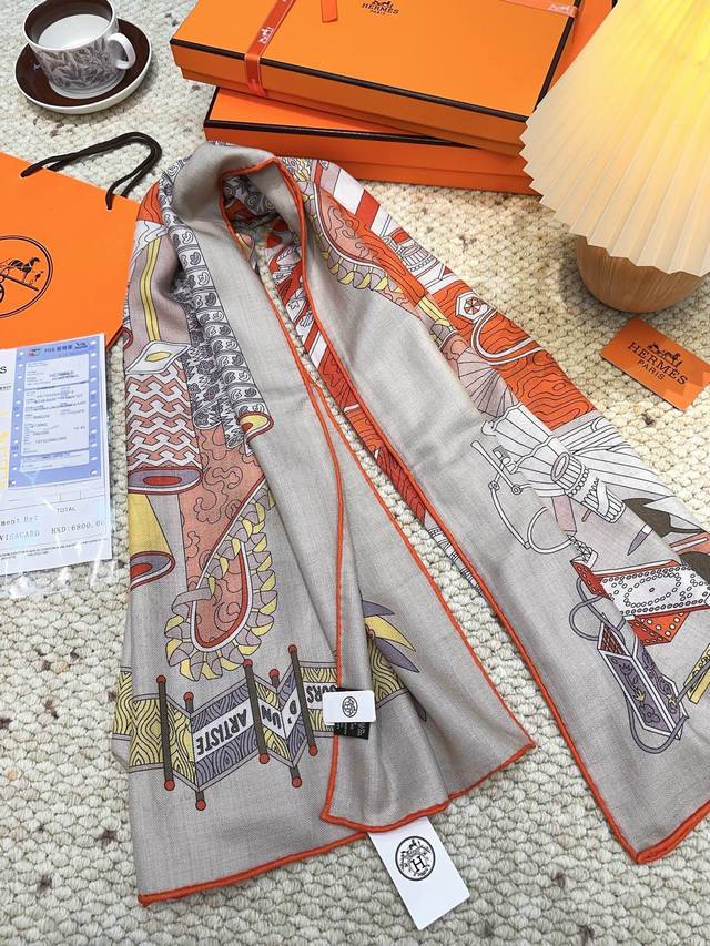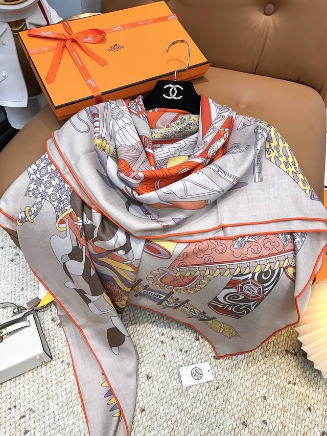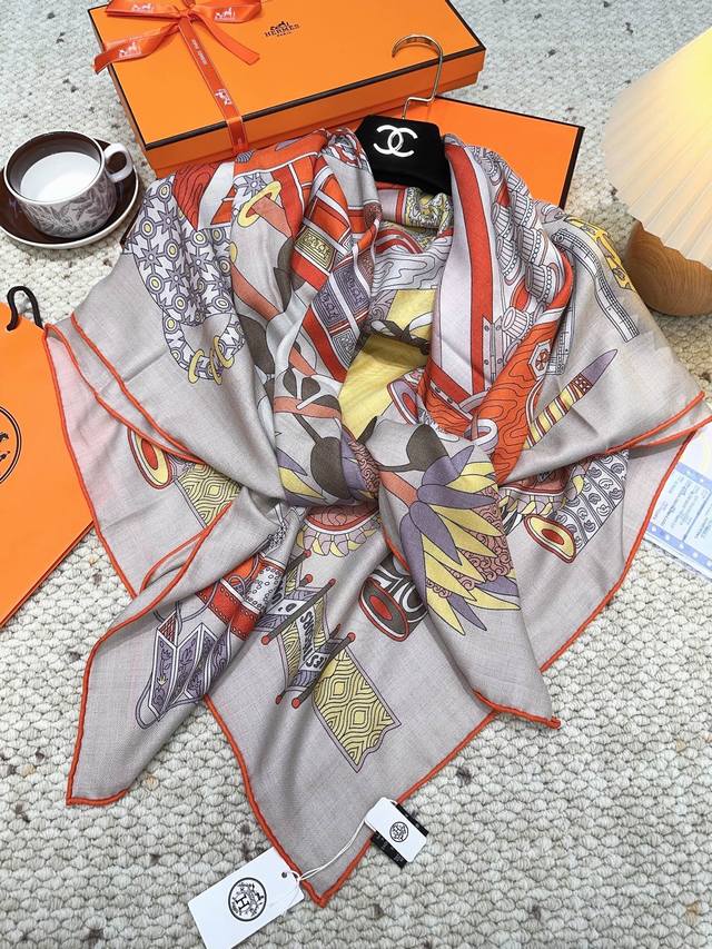 Hermes New Arrival: This eye-catching accessory from Hermes' Spring/Summer 2025 collection can be worn in multiple ways and complements any outfit. Whether worn around the neck, as a belt, headband, or headscarf, it is always a beautiful sight. Made in France, this handcrafted, rolled-edge silk cashmere scarf is 30% mulberry silk and 70% cashmere. Size: 140 x 140 cm.
