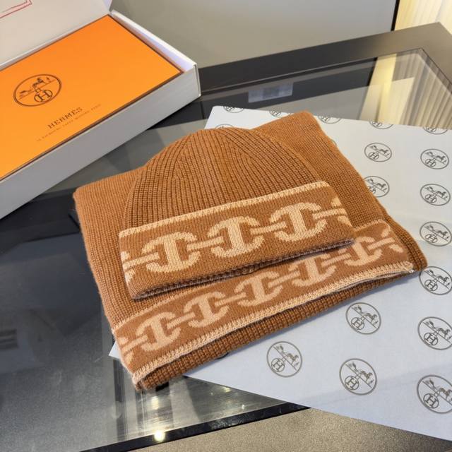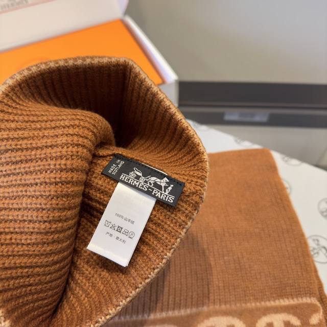 Hermes new cashmere scarf and hat set, warm and luxurious, perfect for the whole