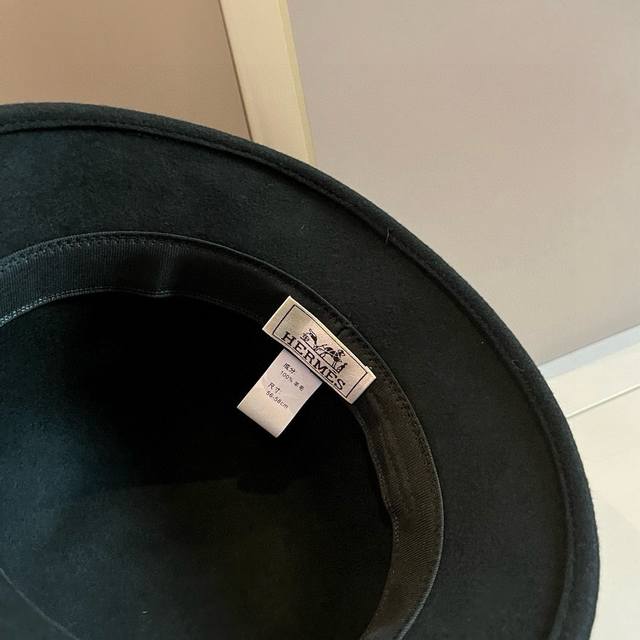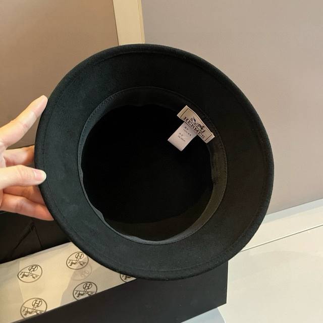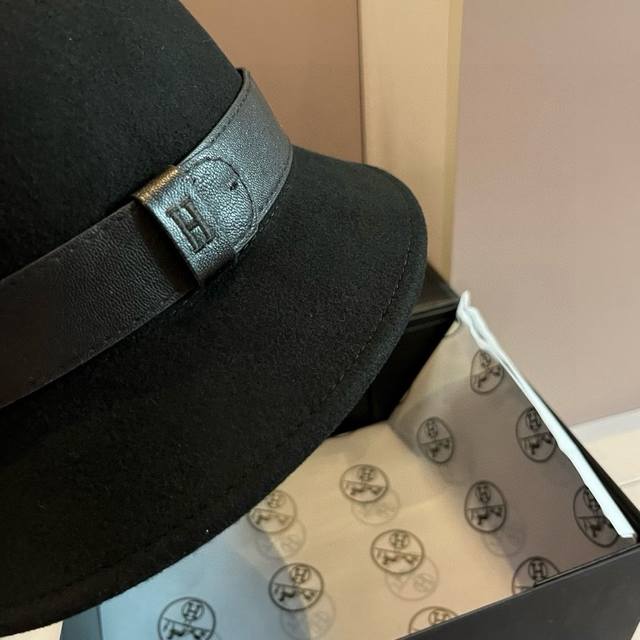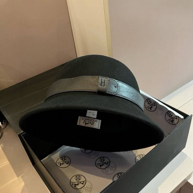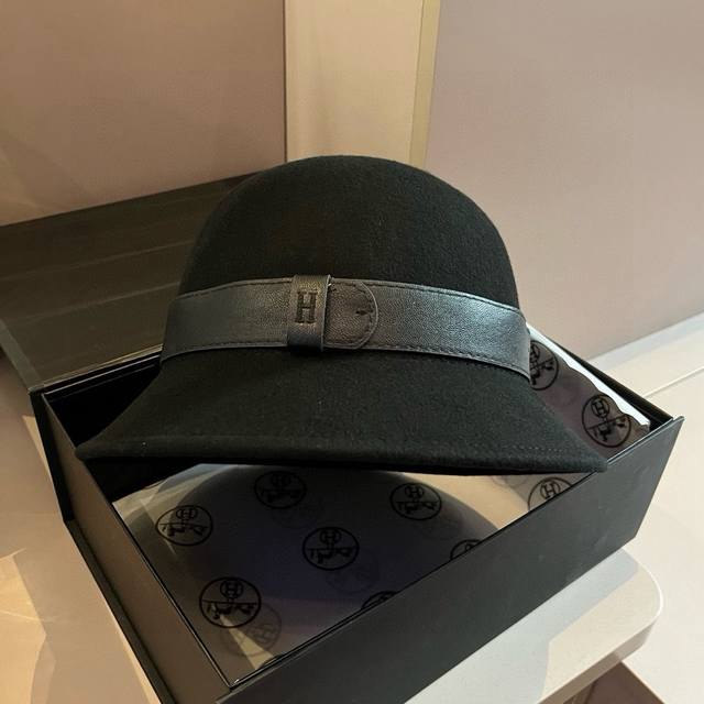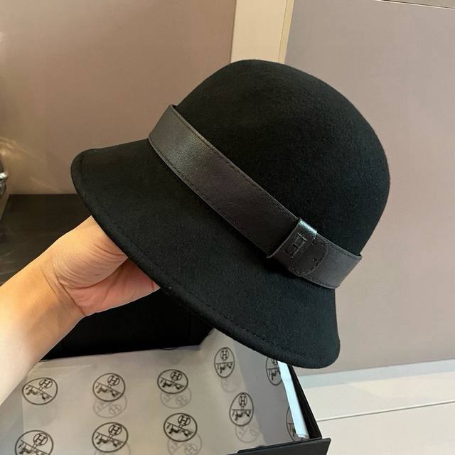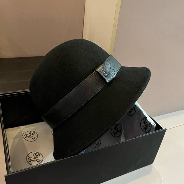 Hermes new wool hat, 100% wool bucket hat, high-end leather belt embroidered logo, super big brand style, airport must-have artifact, head circumference 57cm adjustable