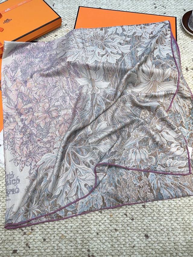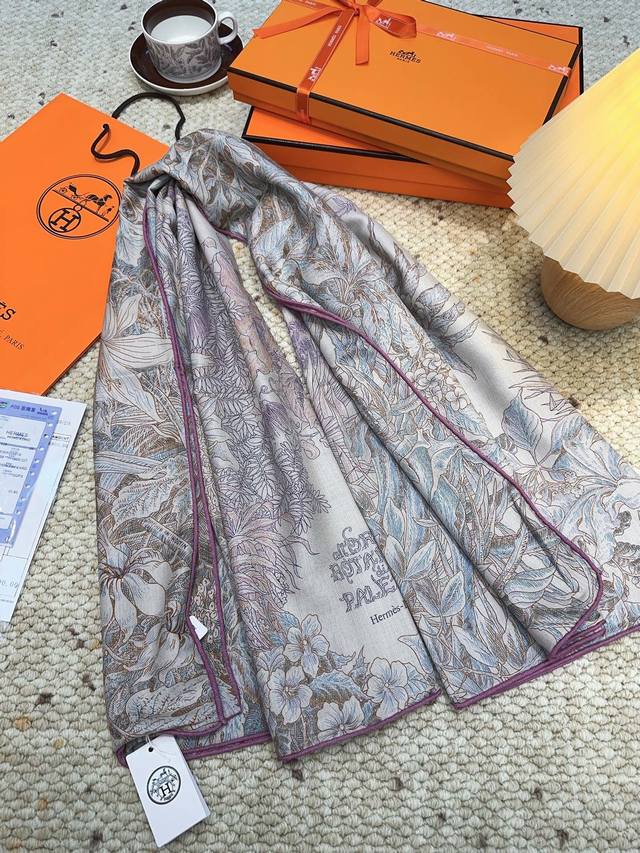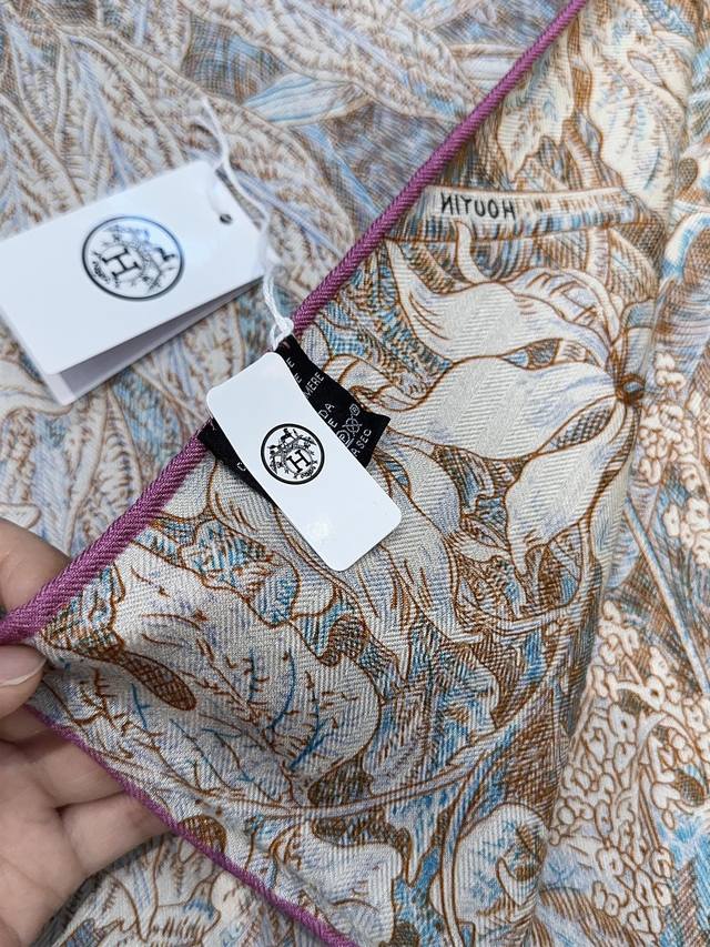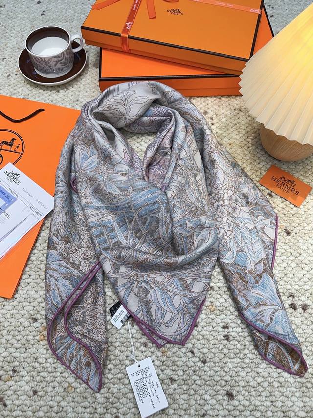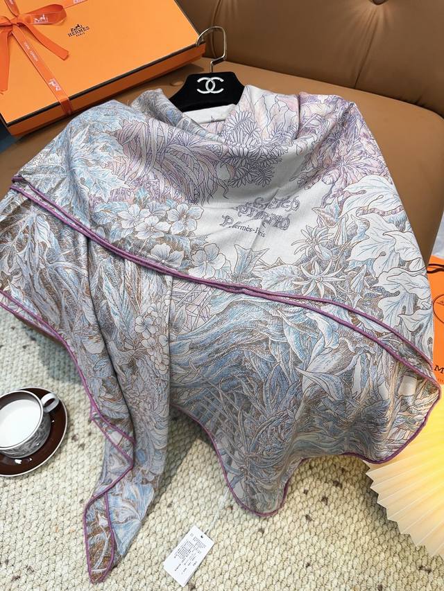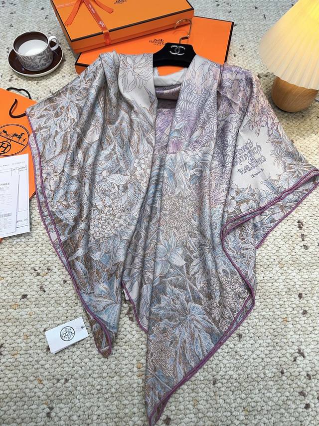 Hermes Palermo Botanical Garden Cashmere Scarf, new style, top-notch craftsmanship, excellent value. A Hermes boutique bestseller, featuring a three-dimensional pattern and texture, extremely high-end quality. Special advanced technology and cutting-edge processing have made it a favorite among wealthy and beautiful women. Whether it's the quality, style, or price, it's sure to make designer lovers scream. Extremely high cost-performance ratio, definitely worth buying. Size: 140cm*140cm, 70% cashmere + 30% silk.