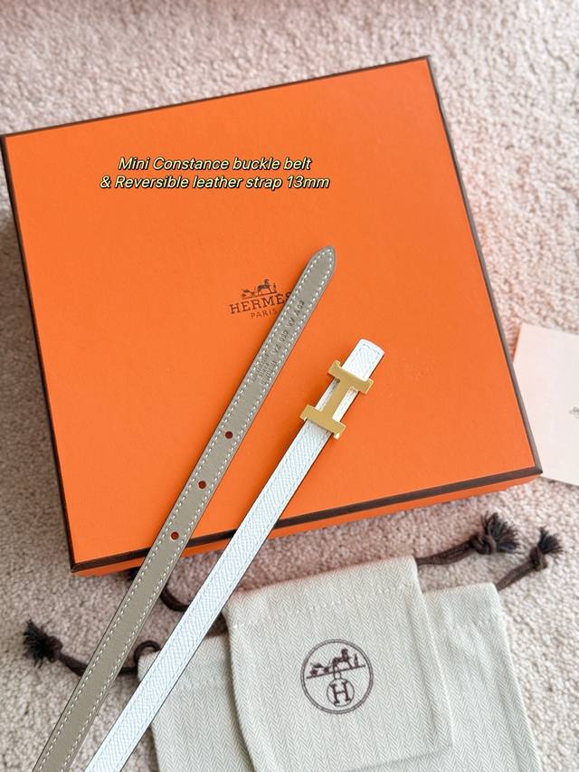 Mini Constance, a premium stainless steel belt with a steel stamp and imported Epsom leather, width 13mm. This Herm