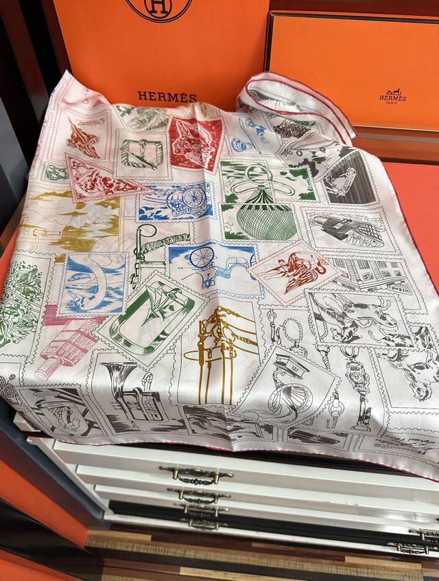 New Arrival 2025 Hermes Heavyweight Stamp Collector's Scarf 90cm Square Scarf [lips] Simple and stylish, so beautiful, high quality, so easy to match, addictive silk scarf with an understated and simple temperament, perfect for the current season, a timeless piece that can be used for a long time, you'll love it for a million years and still feel it's too much [lips] Size: 90X90, Material: Silk