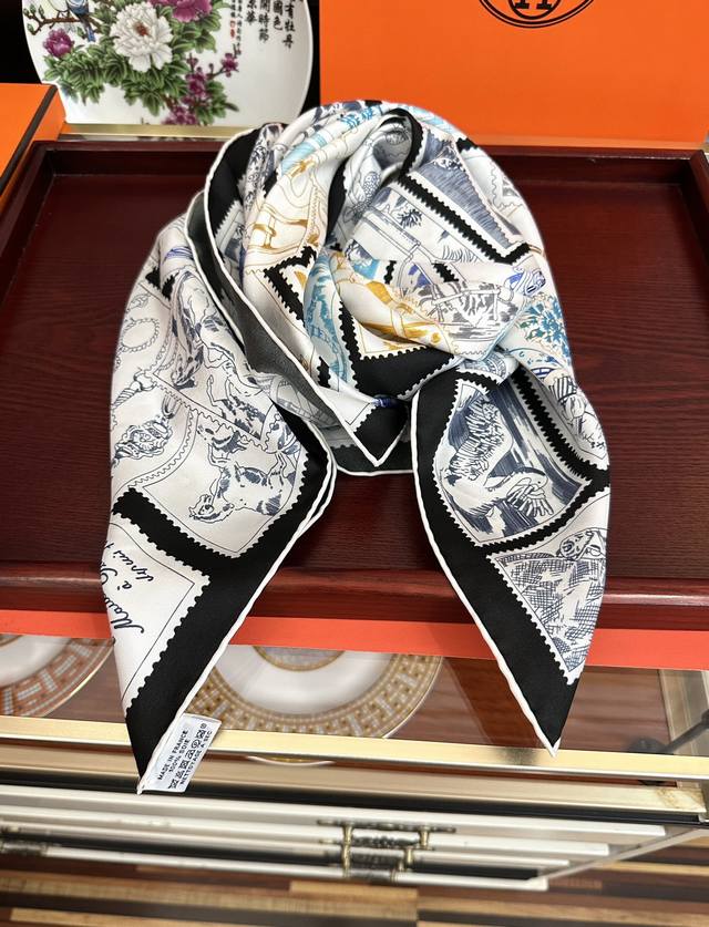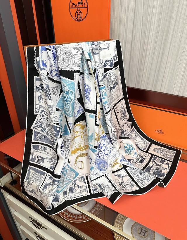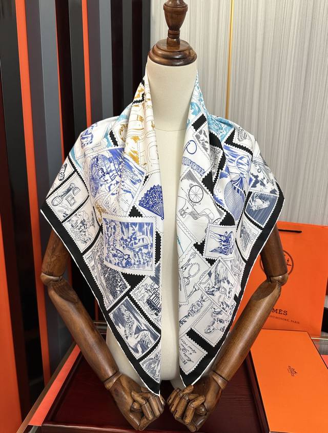 New Arrival 2025 Hermes Heavyweight Stamp Collector's Scarf 90cm Square Scarf [l