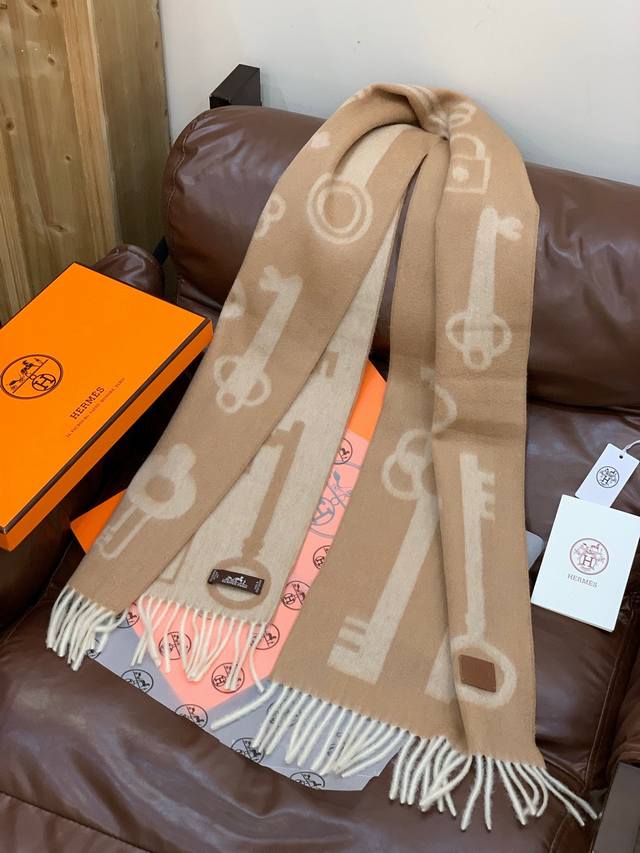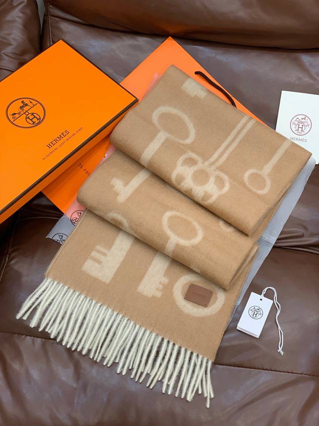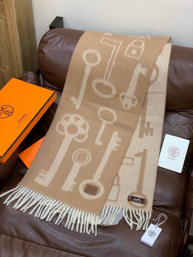 New Arrival 2025 Hermes Key Scarf for Men and Women DDD This scarf is a rare find, as they are all export orders. It's a limited but exquisite item, a must-have for any Hermes woman. The design is very feminine and classically beautiful, a classic and elegant style for both men and women. Made with premium cashmere, it's incredibly soft and beautiful. The effect is stunning, sophisticated, and simple. The color scheme is gorgeous; any man or woman will love it. The jacquard key pattern is exquisitely detailed, adding a touch of understated elegance. It pairs well with both formal and casual wear. Fold it in half and wear it as a drape or around your neck