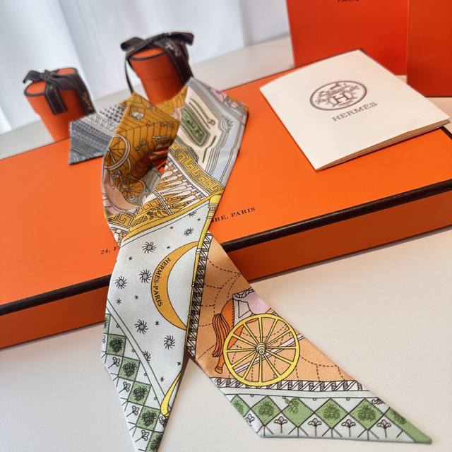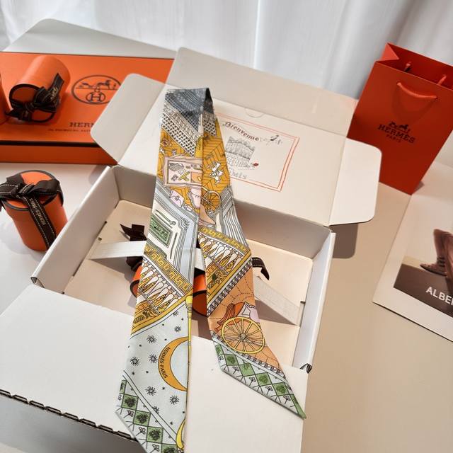 New Arrival: Exquisite 18 momme heavyweight twill silk ribbon, absolutely top-quality, authentic design, same as the new Hermes Twilly, crafted from premium twill silk with incredibly clear printed lettering. Specifications: 5 x 86 cm, 100% twill silk, double-layered, double-sided.