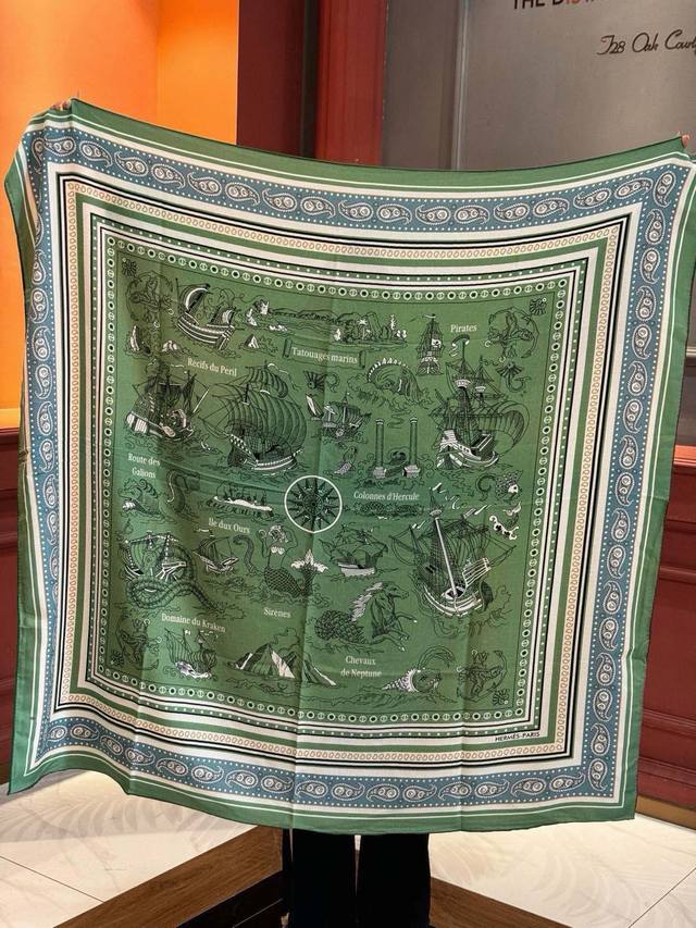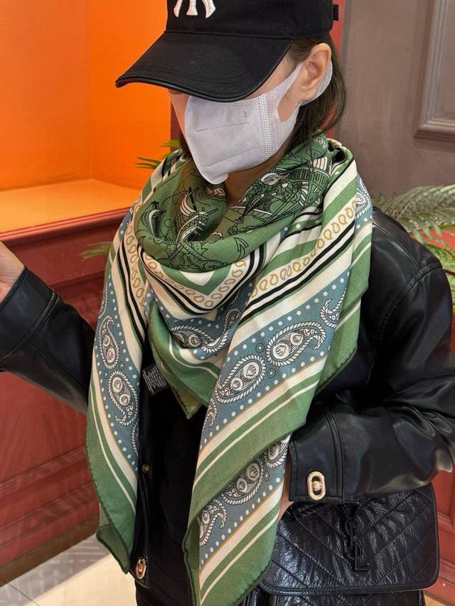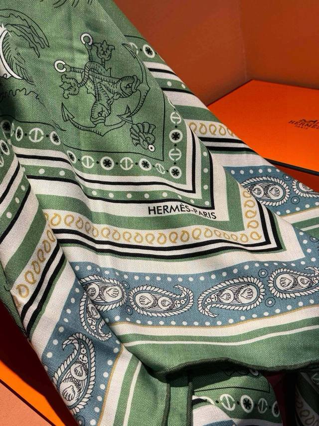 New cashmere style, everyone who bought it says it's beautiful, highly recommended! Hermes reversible cashmere square scarf with sailor tattoo design, 140cm. Top-notch craftsmanship, excellent value! A best-selling Hermes boutique item, featuring a three-dimensional pattern and texture, extremely high-end quality. Special craftsmanship, high-end research and development, stunning debut! Special cutting-edge processing technology is loved by wealthy and beautiful women. Whether it's the quality, style, or price, it will make those who love designer brands scream! Super high cost performance, definitely worth buying! Size: 140cm*140cm, 70% cashmere + 30% silk.