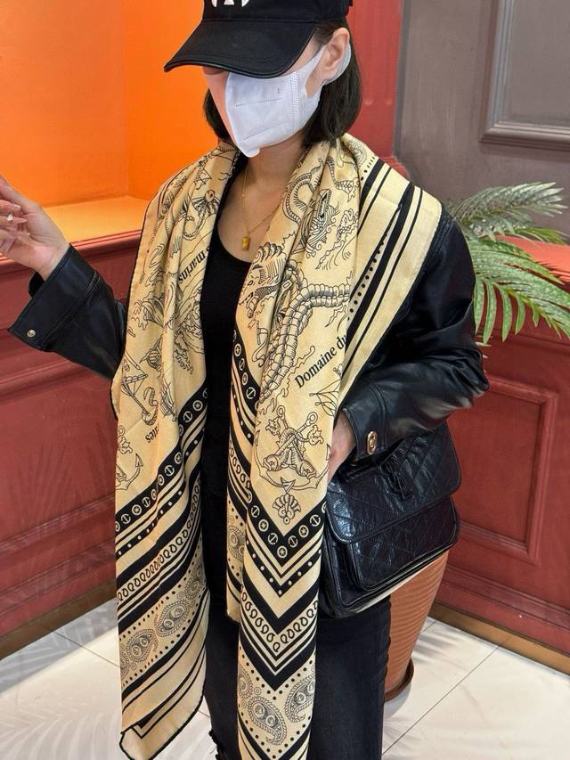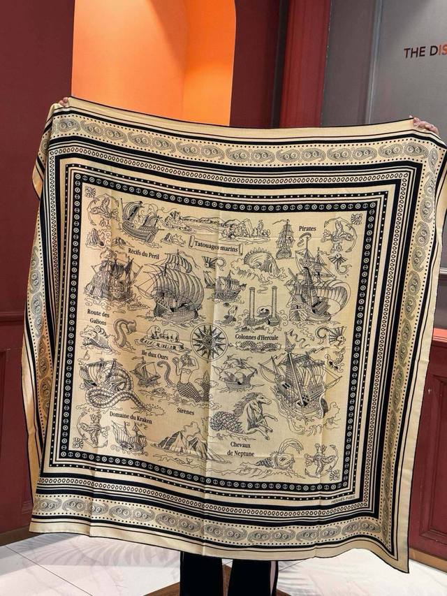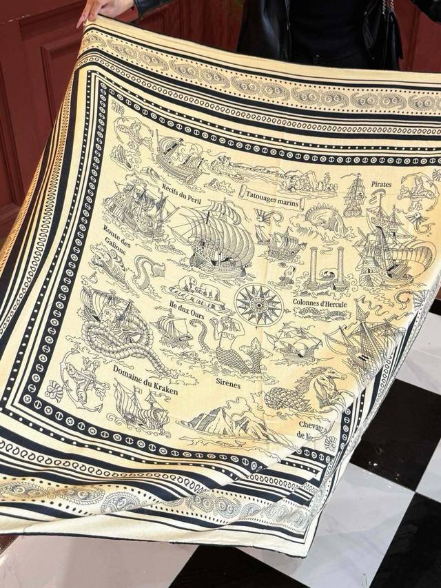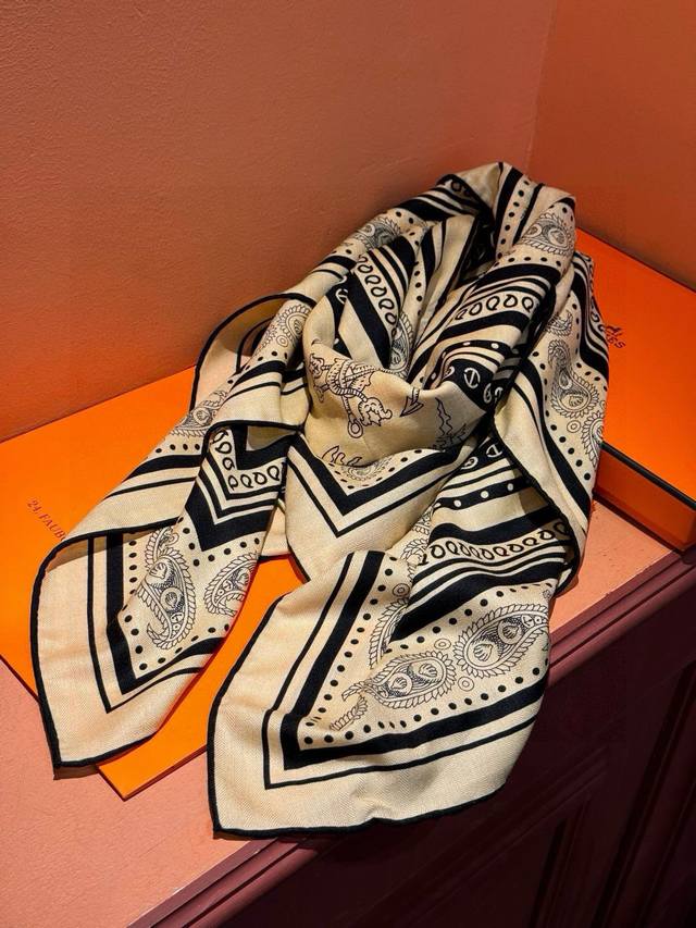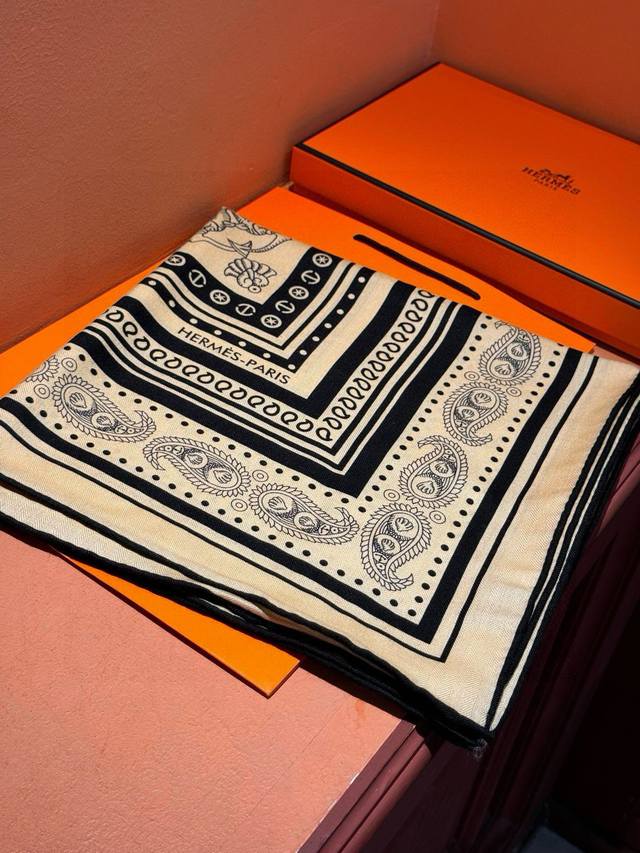 New cashmere style, everyone who bought it says it's beautiful, highly recommended! Hermes reversible cashmere square scarf with sailor tattoo design, 140cm. Top-notch craftsmanship, excellent value! A best-selling Hermes boutique item, featuring a three-dimensional pattern and texture, extremely high-end quality. Special craftsmanship, high-end research and development, stunning debut! Special cutting-edge processing technology is loved by wealthy and beautiful women. Whether it's the quality, style, or price, it will make those who love designer brands scream! Super high cost performance, definitely worth buying! Size: 140cm*140cm, 70% cashmere + 30% silk.