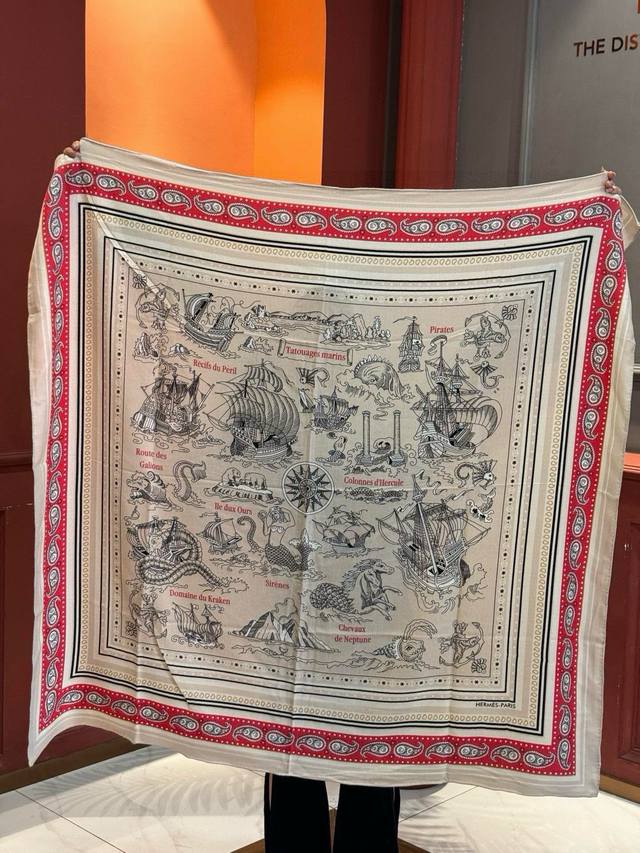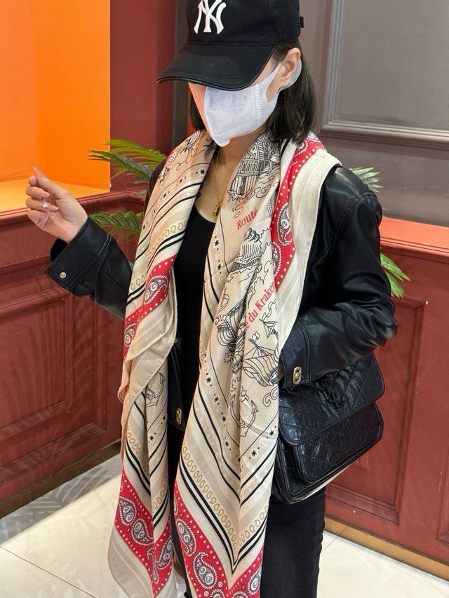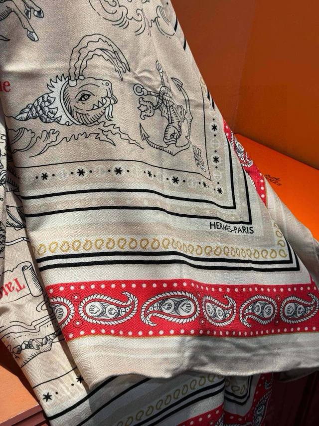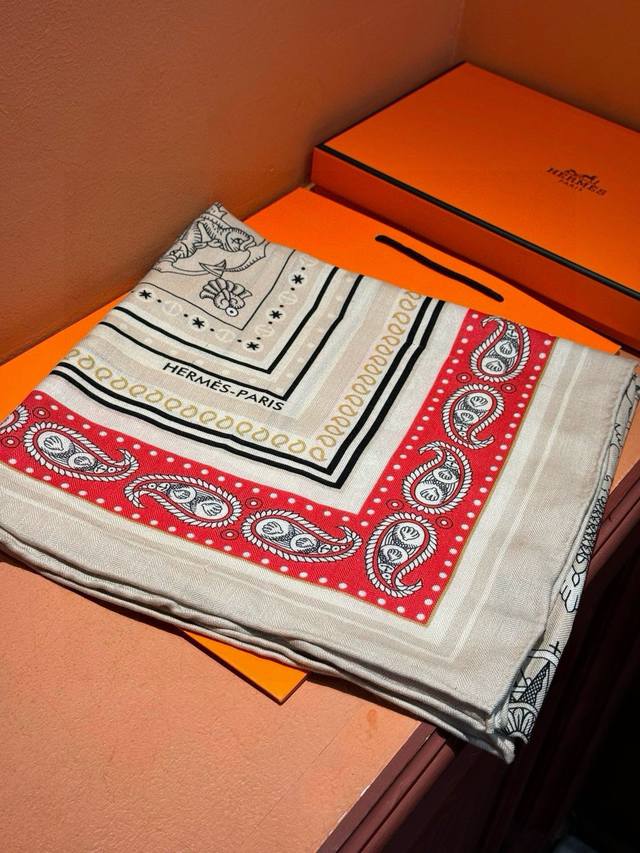 New cashmere style, everyone who bought it says it's beautiful, highly recommended! Hermes reversible cashmere square scarf with sailor tattoo design, 140cm. Top-notch craftsmanship, excellent value! A best-selling Hermes boutique item, featuring a three-dimensional pattern and texture, extremely high-end quality. Special craftsmanship, high-end research and development, stunning debut! Special cutting-edge processing technology is loved by wealthy and beautiful women. Whether it's the quality, style, or price, it will make those who love designer brands scream! Super high cost performance, definitely worth buying! Size: 140cm*140cm, 70% cashmere + 30% silk.