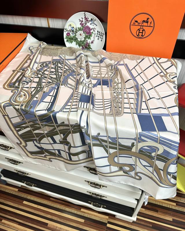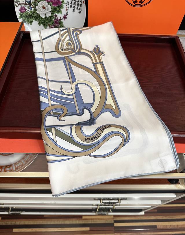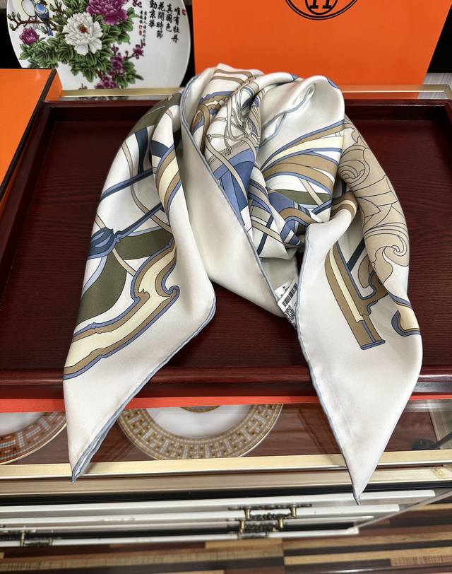 Shms2589 18 momme double-sided 90X90Cm twill silk Hermes leaping horse Ddd