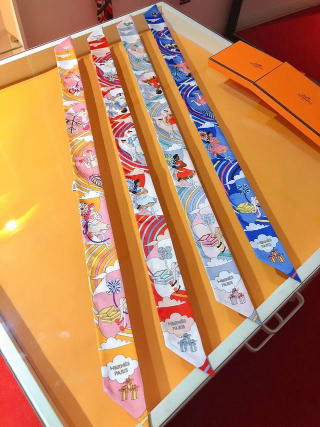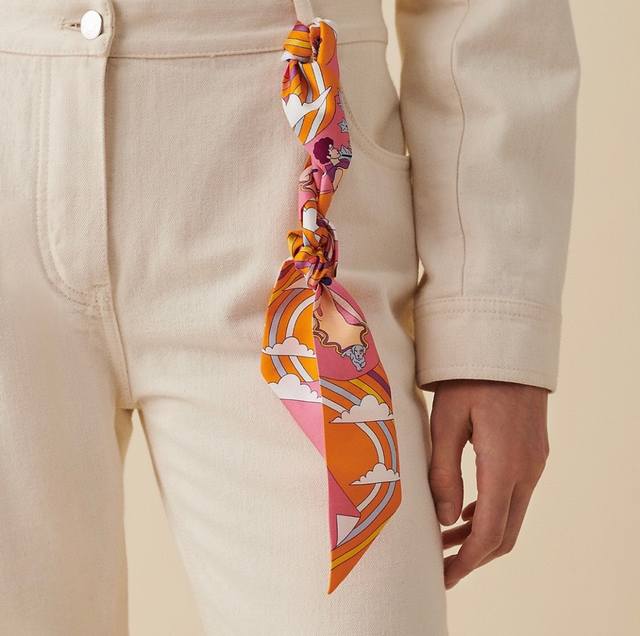 Phms2221 Hermes Cloud Girl Twilly Small Silk Scarf. Made of top-quality twill silk, the ultra-fine print is incredibly clear. It's the perfect gift or personal item. The ribbon can be wrapped around the neck, wrist, or waist, and can also be paired with your favorite bag to give it a fresh new look. Specifications: 5 x 86 cm, 100% twill silk, double-layered, double-sided.