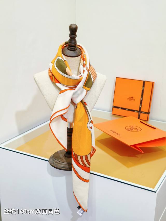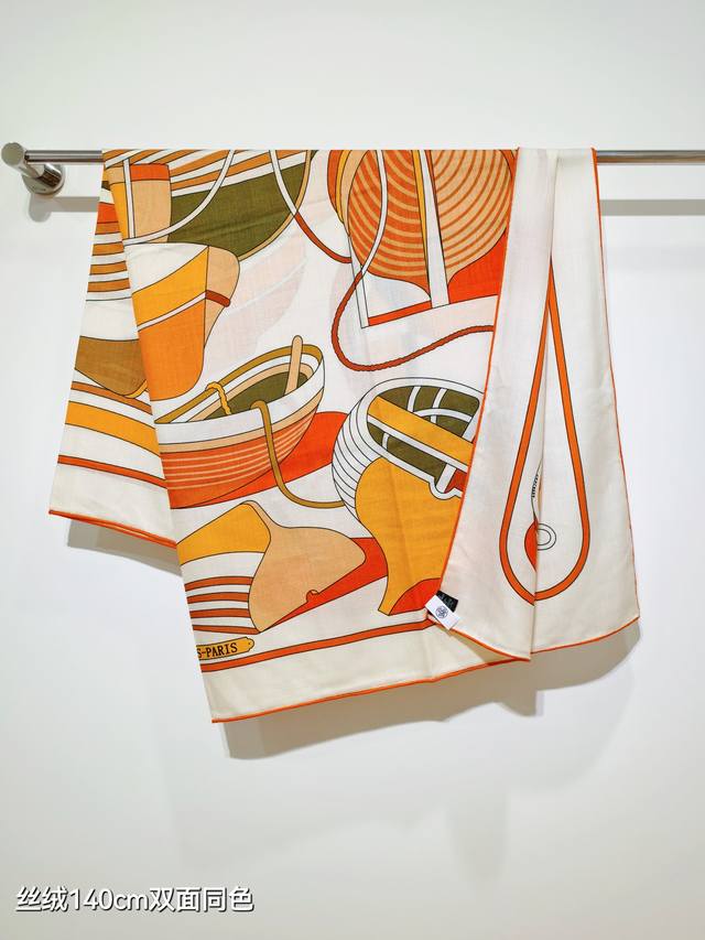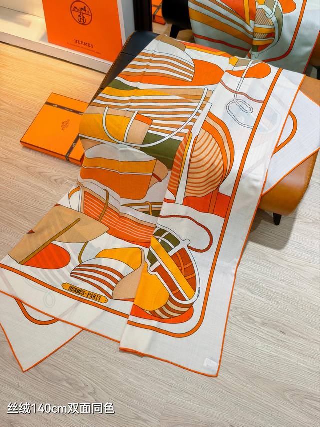 / Rhms2548 Double-sided same color 140X140Cm 70% cashmere 30% silk Hermes Thalassa