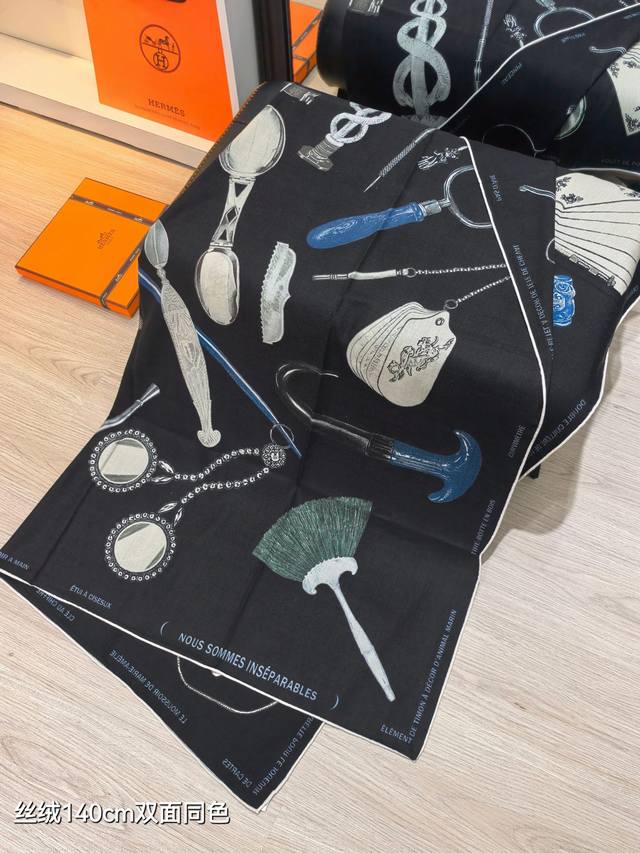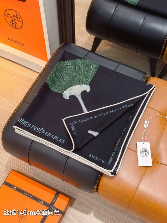 / Rhms2550 Double-sided same color 140X140Cm 70% cashmere 30% silk Hermes companio