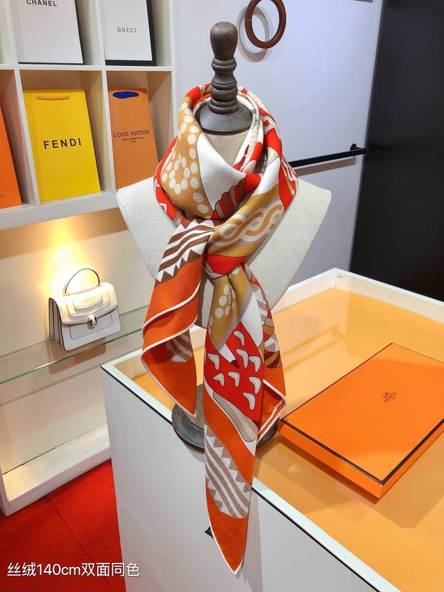 / Rhms2570 Double-sided same color 140X140Cm 70% cashmere 30% silk Herm