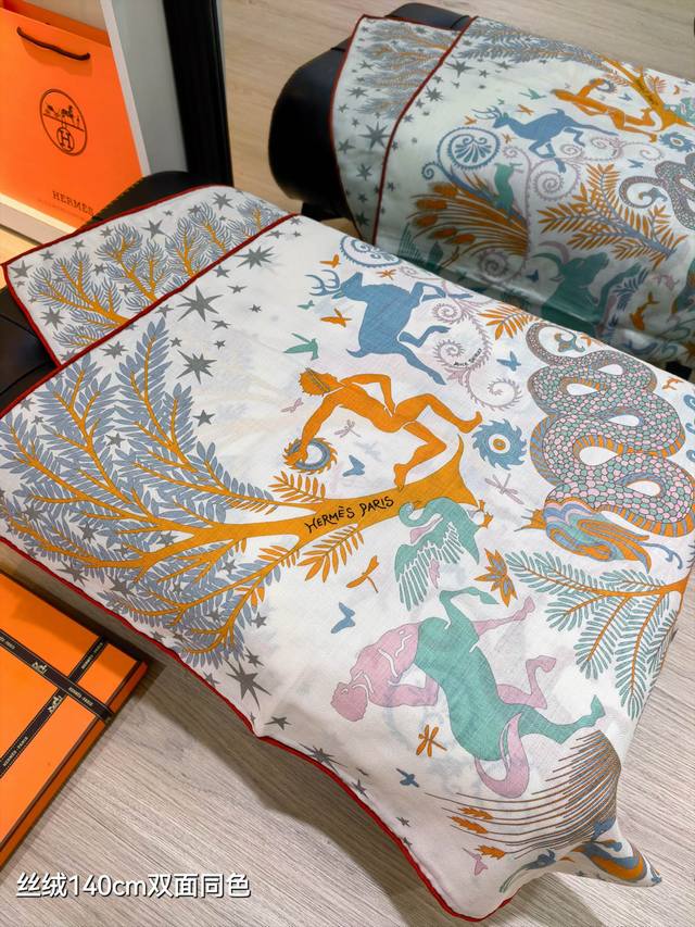 Rhms2548 Double-sided same color 140X140Cm 70% cashmere 30% silk Hermes Thalassa