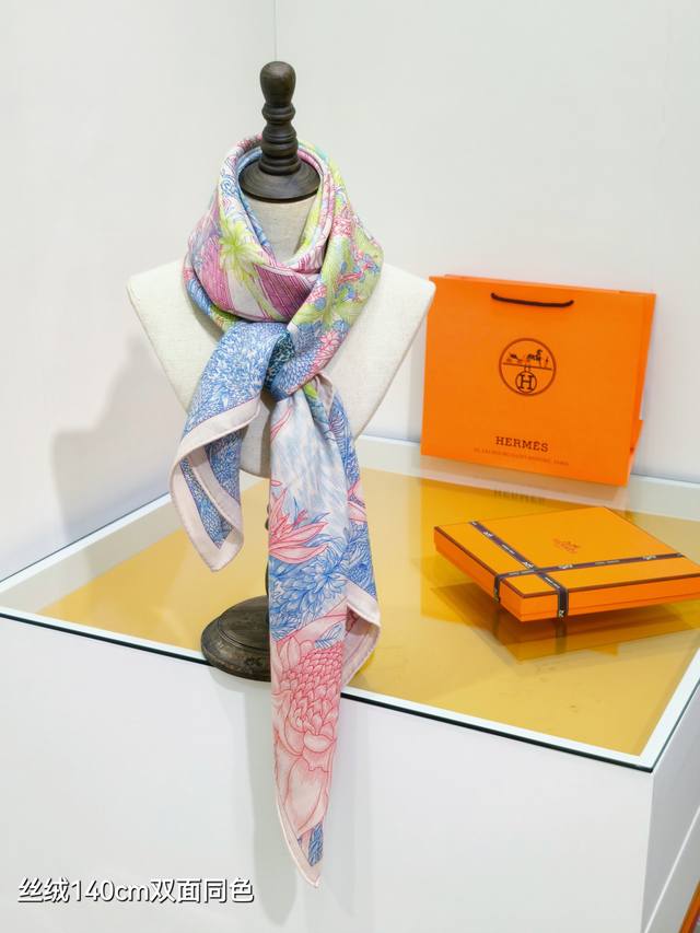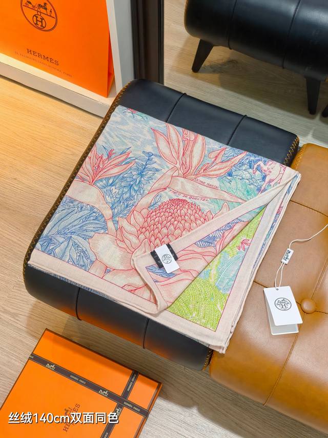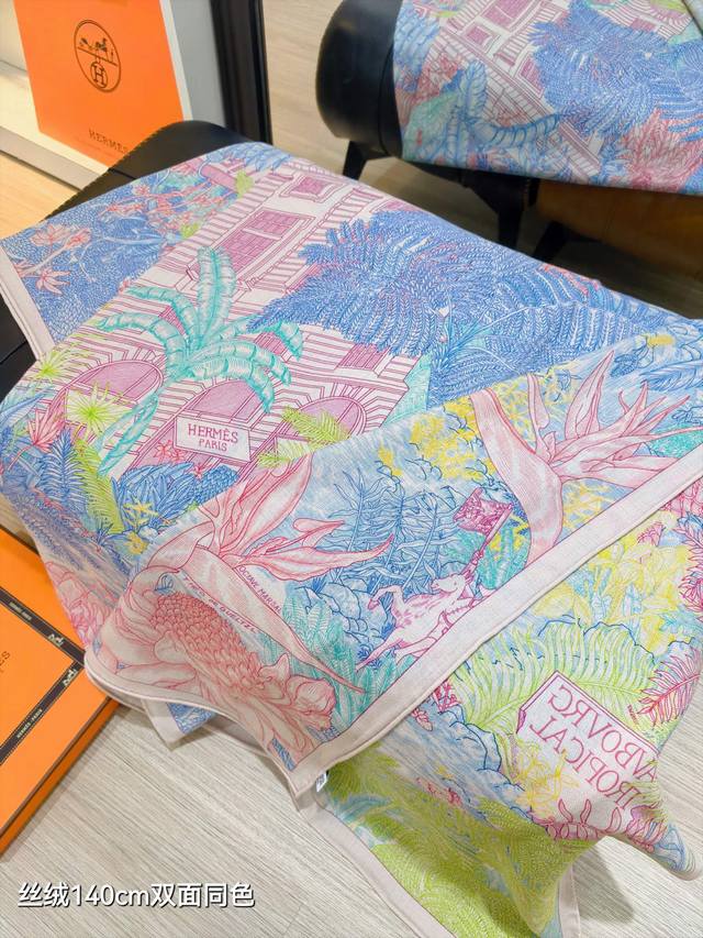 Rhms2579 DDD Double-sided same color 140X140Cm 70% cashmere 30% silk DDD Hermes Jungle Edition Fu Bao DDD