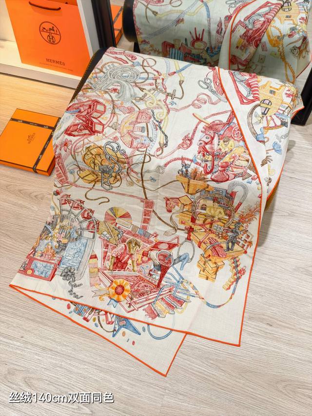 Rhms2592 Double-sided same color 140X140Cm 70% cashmere 30% silk Hermes Hermes W