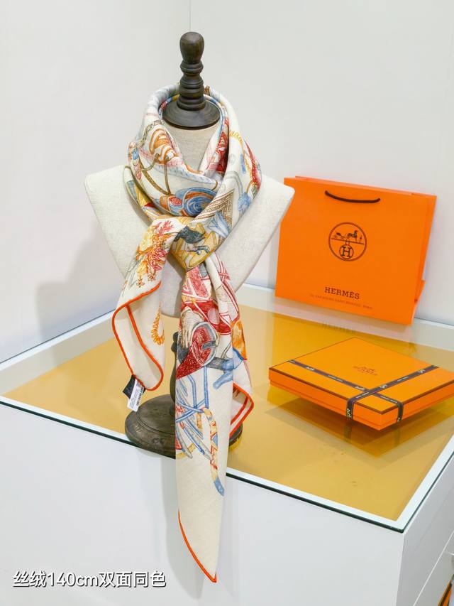 / Rhms2592 Double-sided same color 140X140Cm 70% cashmere 30% silk Hermes Hermes W