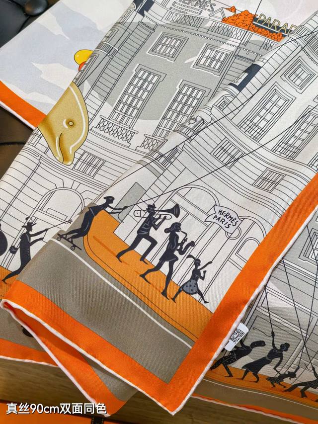 Shms2542 18 momme double-sided 90X90Cm twill silk Hermes Hermes Parade Ddd