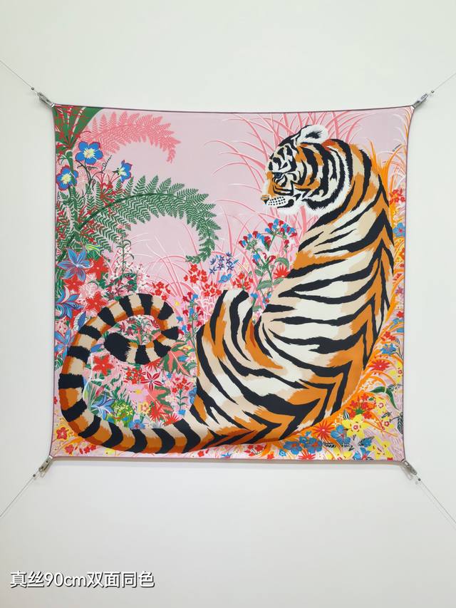 Shms2562 18 momme double-sided 90X90Cm twill silk Hermes Tiger Power Ddd