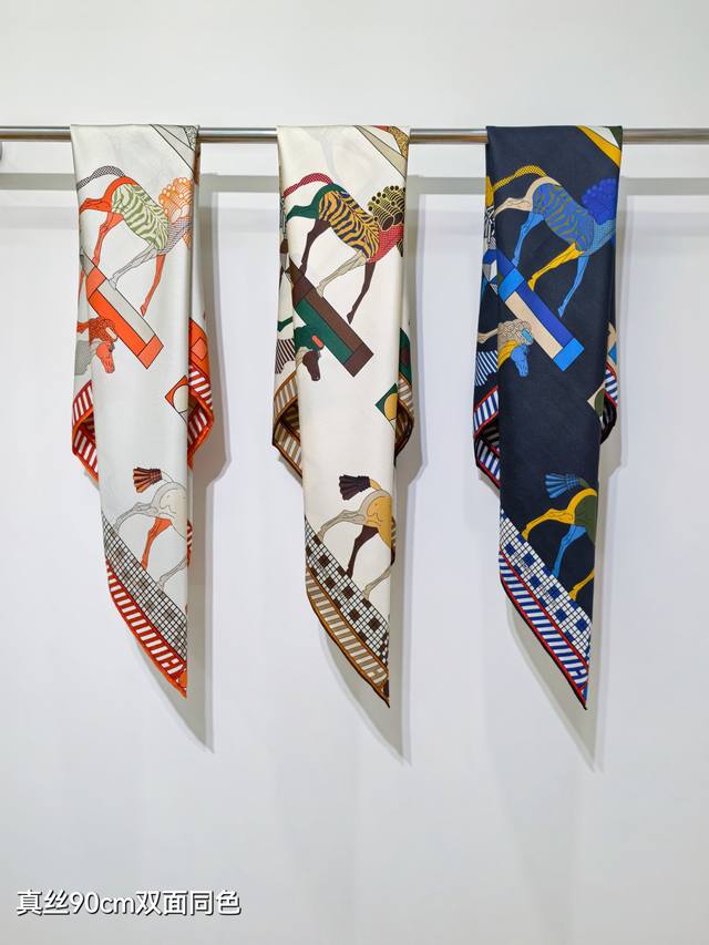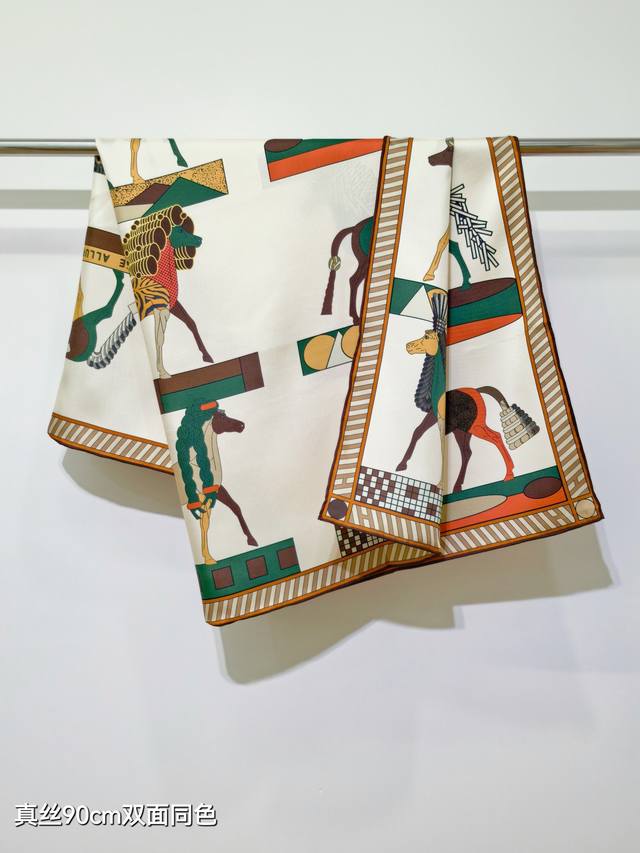 Shms2572 18 momme double-sided 90X90Cm twill silk Hermes check pattern horse mas