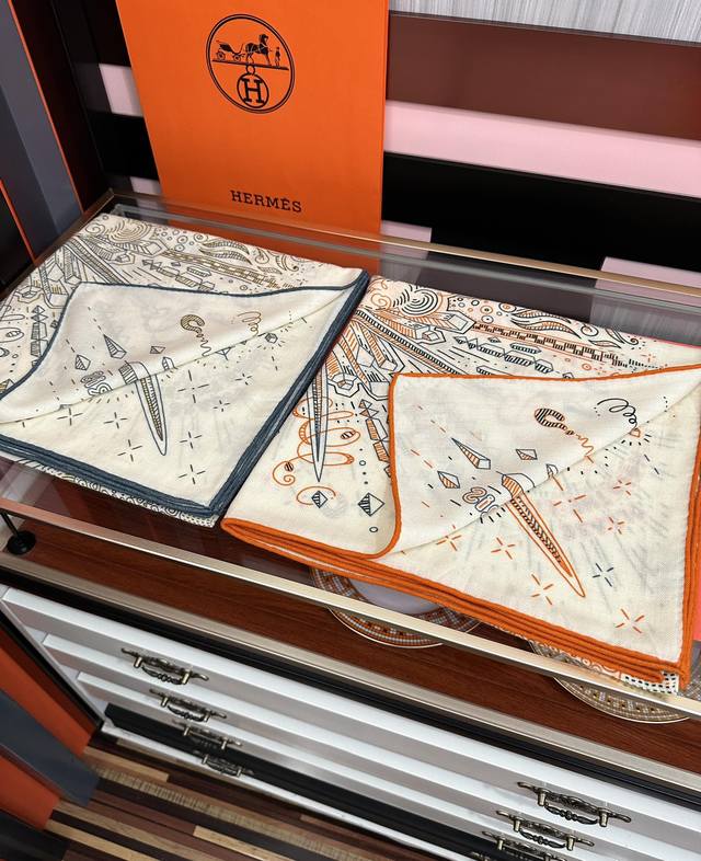 Hermes' latest men's and women's two-tone pure cashmere scarf. Our couple scarve